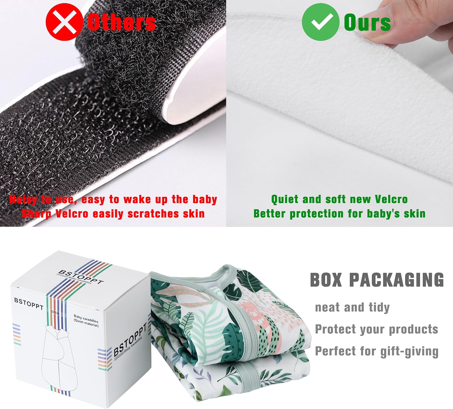 - Our swaddle wings are made of soft linkable new cotton fabric instead of the sharp velcro design of other products,Safer and more comfortable.The TOG rating is 0.5, and closing the wings TOG can be upgraded to TOG 1.0, providing proper comfort for mild seasons or climates.