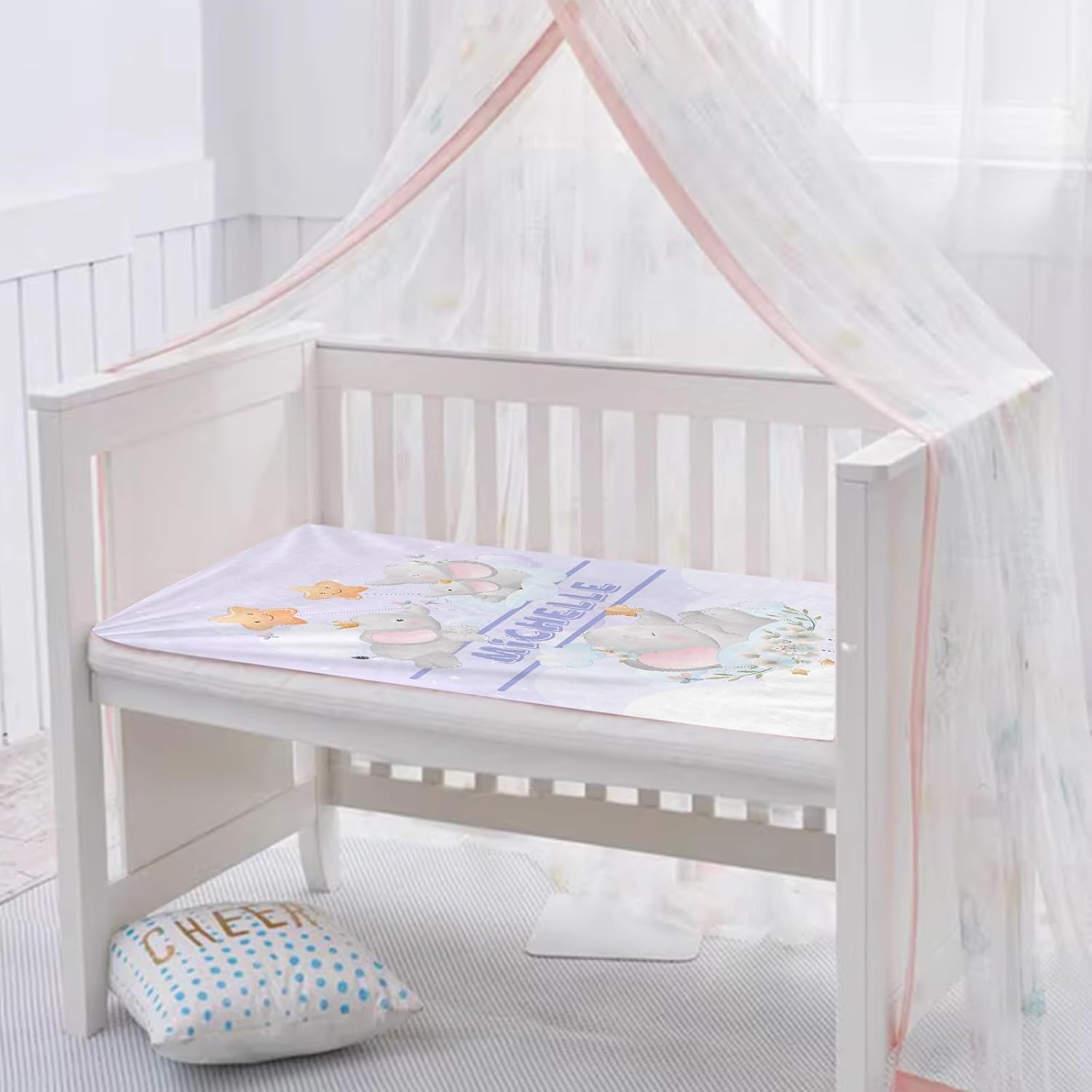 Personalized Baby Blanket with Name, Cute Custom Light Purple Elephant Name Blankets Toddler Girls Soft Flannne Swaddling Blankets Customized Memorial Gift from Nana for Infant Newborn Shower