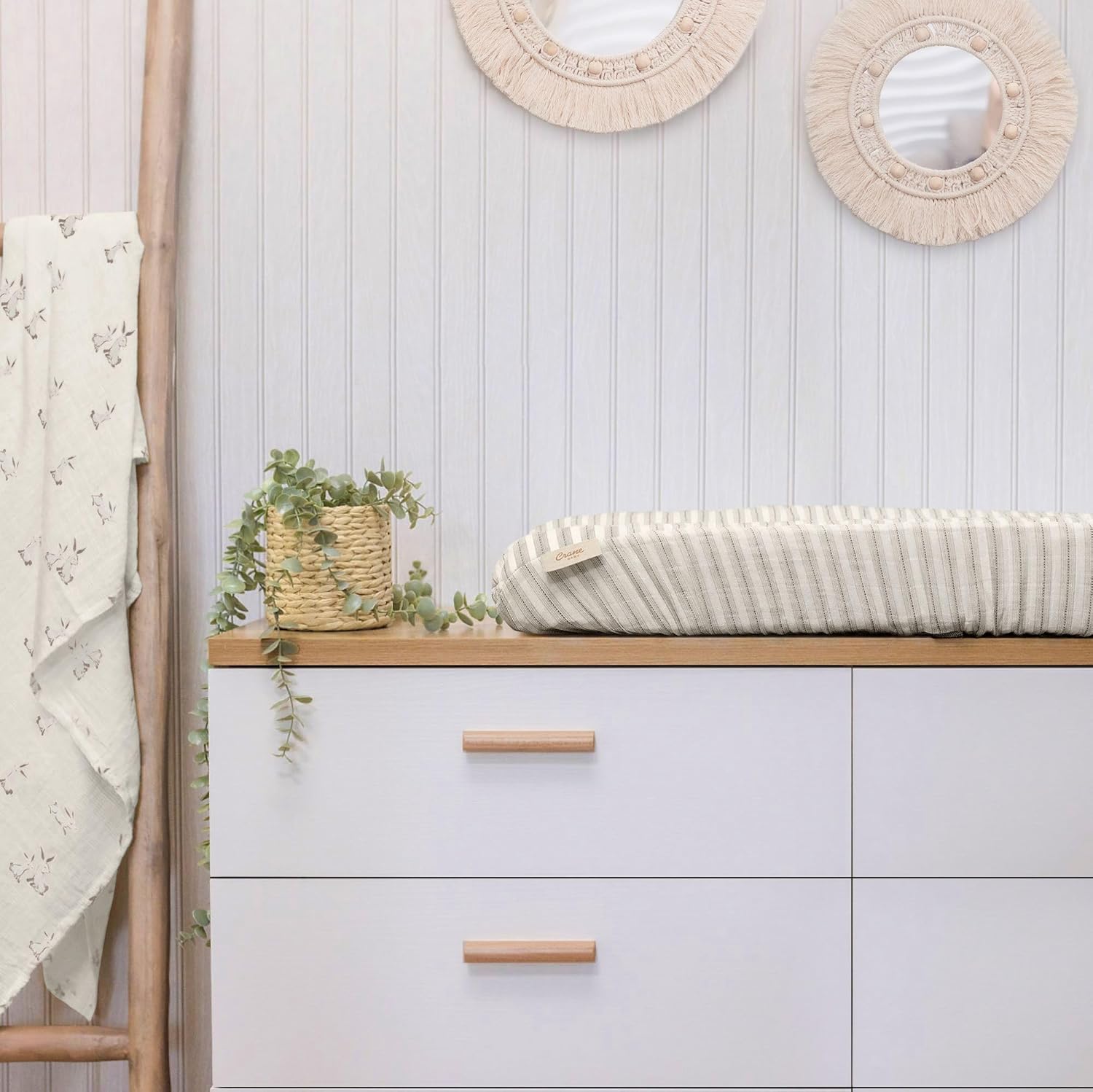 - Nursery Style: Elevate your baby’s nursery with our chic stripe-patterned cover, crafted to add a serene touch with its natural color palette, blending seamlessly with any décor and makes a perfect registry gift