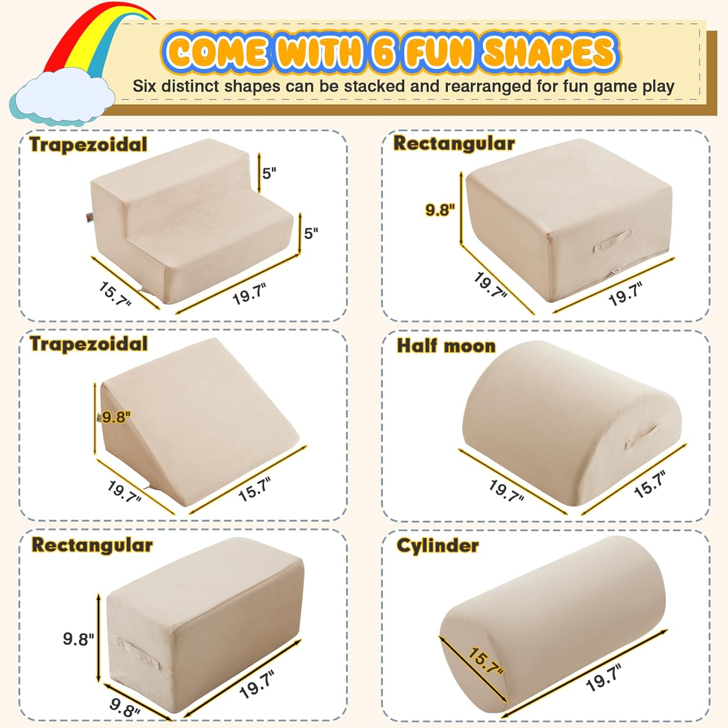 jela Foam Blocks 6Pcs Soft Play Equipment Luxury Miss Fabric, Toddler Climbing Toys Indoor Soft Play Climbing for Toddlers, Lightweight Climbing Blocks for Babies, Kids, Climb and Crawl Foam Playset