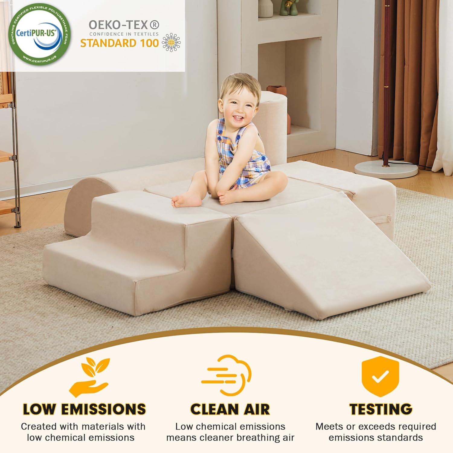 - 【SAFE AND GUARANTEED】: Jela foam climbing blocks are CertiPUR-US certified, non-toxic, environmentally friendly, and odorless fabric with OKEK-TEX approved. The soft play climbing for toddlers with hidden zippers are designed to avoid scratching children's soft skin. We focus on offering kids a reassuring environment to play, the product is built without hard structure or smooth edges, to prevent kids from bumping.