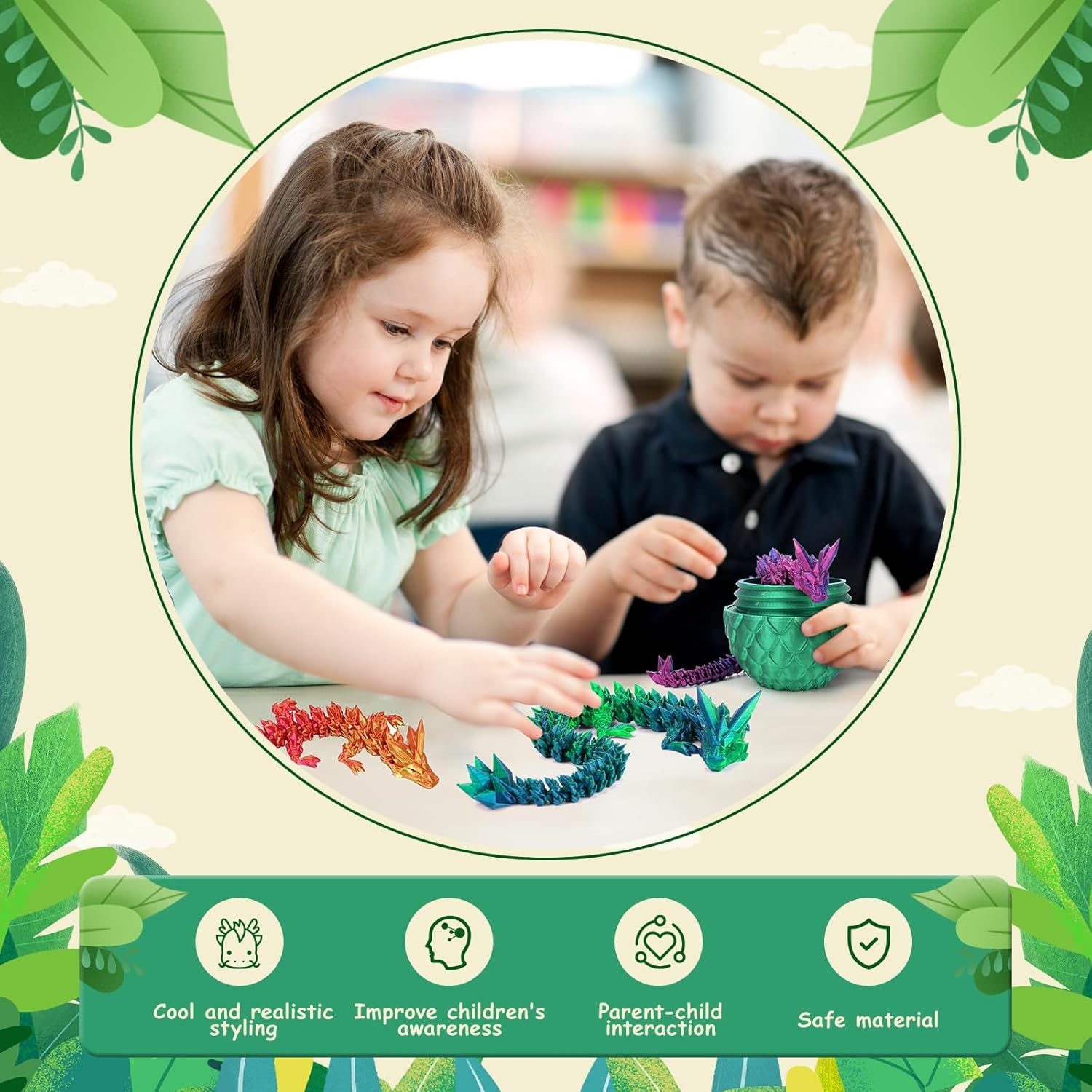 3D Printed Dragon in Eggs 12 in Articulated Dragon Crystal Dragon Fidget Toy with Dragon Eggs Flexible Executive Desk Toys Home Office Decor (Random-Color)