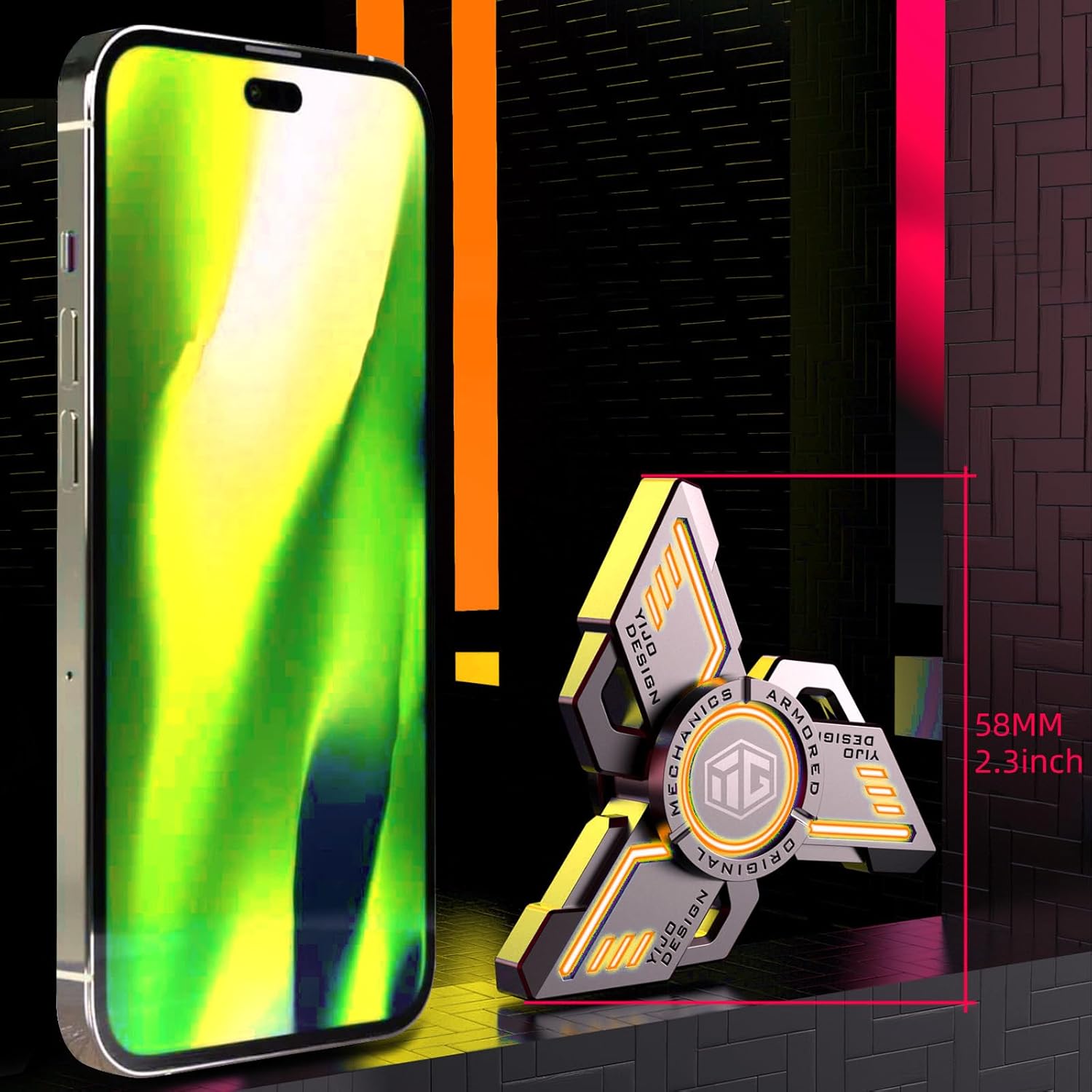 INNÔPLUS Fidget Spinner, Fidget Spinners Cool, Fidget Spinners for Kids, Stress Anxiety ADHD Relief Figets Toy, Fidget Light Up Spinner, Metal Finger Hand Spinner Toy with Luminous Light (Orange)