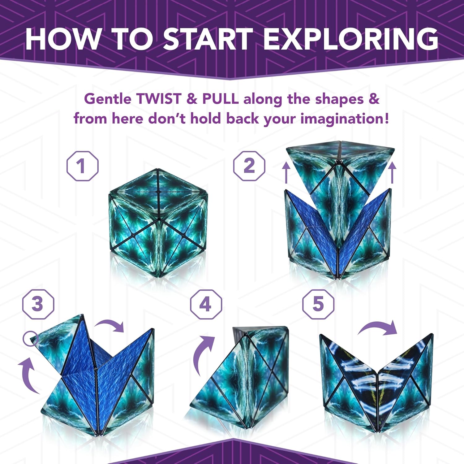 - 🧩 Master The Moto - To return to the magnetic magic cube, you must master the Moto! Our transformational puzzle is one of a kind - with time and patience, you will unlock the patterns and become a Duomoto Master! Combine with the other 4 designs to make larger, spectacular magnetic shape shifting puzzles. Duomoto is not compatible with Cubendi & Shashibo cubes.