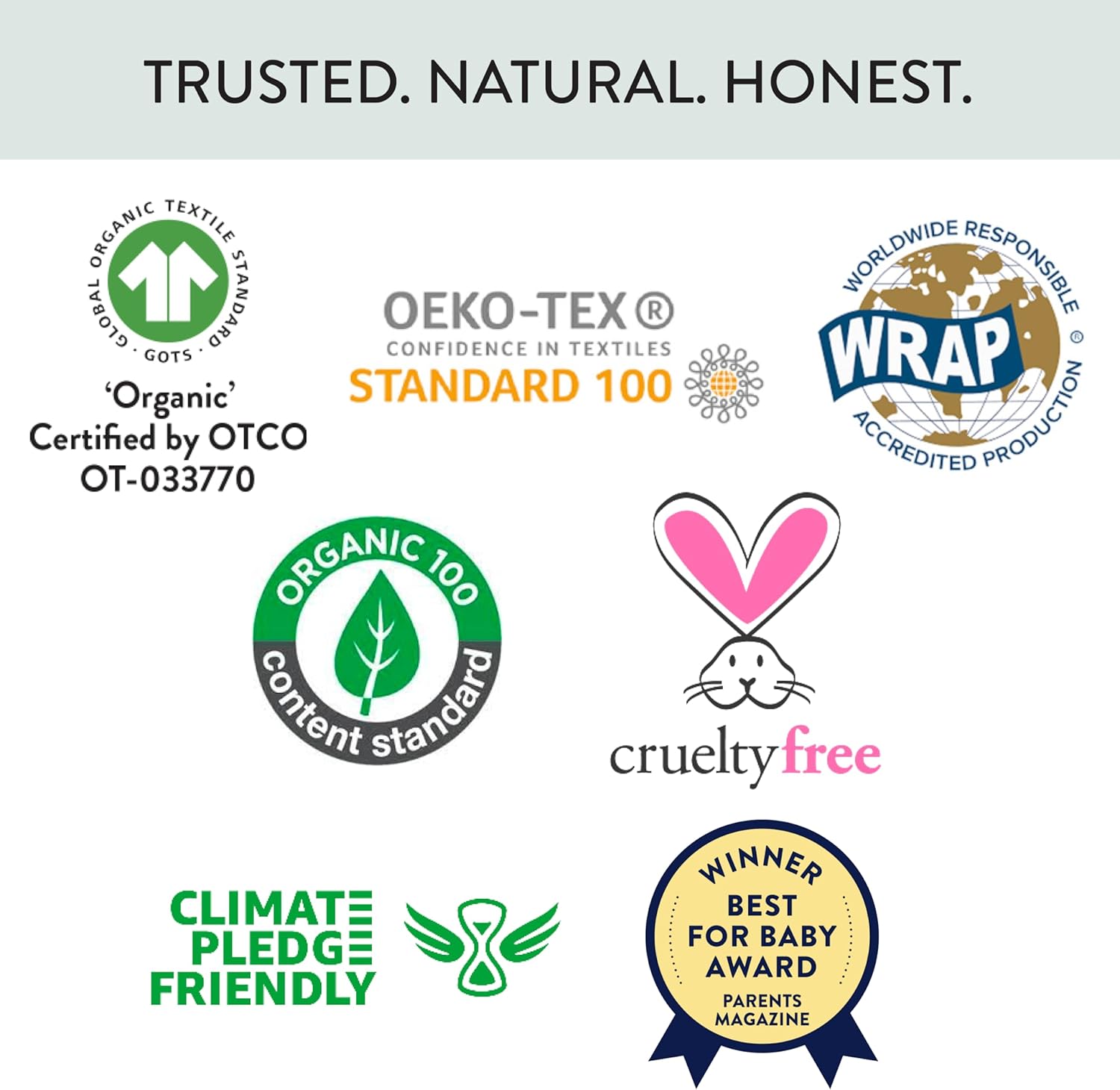 • 100% ORGANIC COTTON, certified by GOTS, the leading world-wide standard for products made in sustainable manufacturing facilities, without the use of synthetic pesticides, non-toxic, PVC free and without heavy metal phthalate dyes