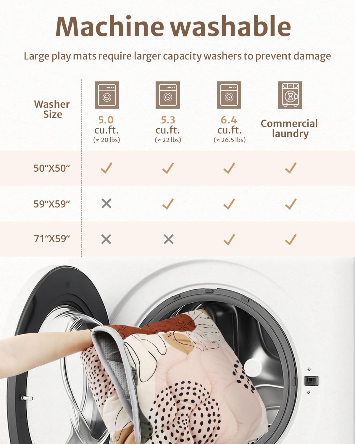 - Portable & Machine Washable - This play mats for floor is one-piece and foldable, which is easy to pack to carry or store to save space. And you can hand over the job to the washing machine to helps you clean the stains on the baby playmat, which makes your life more easier