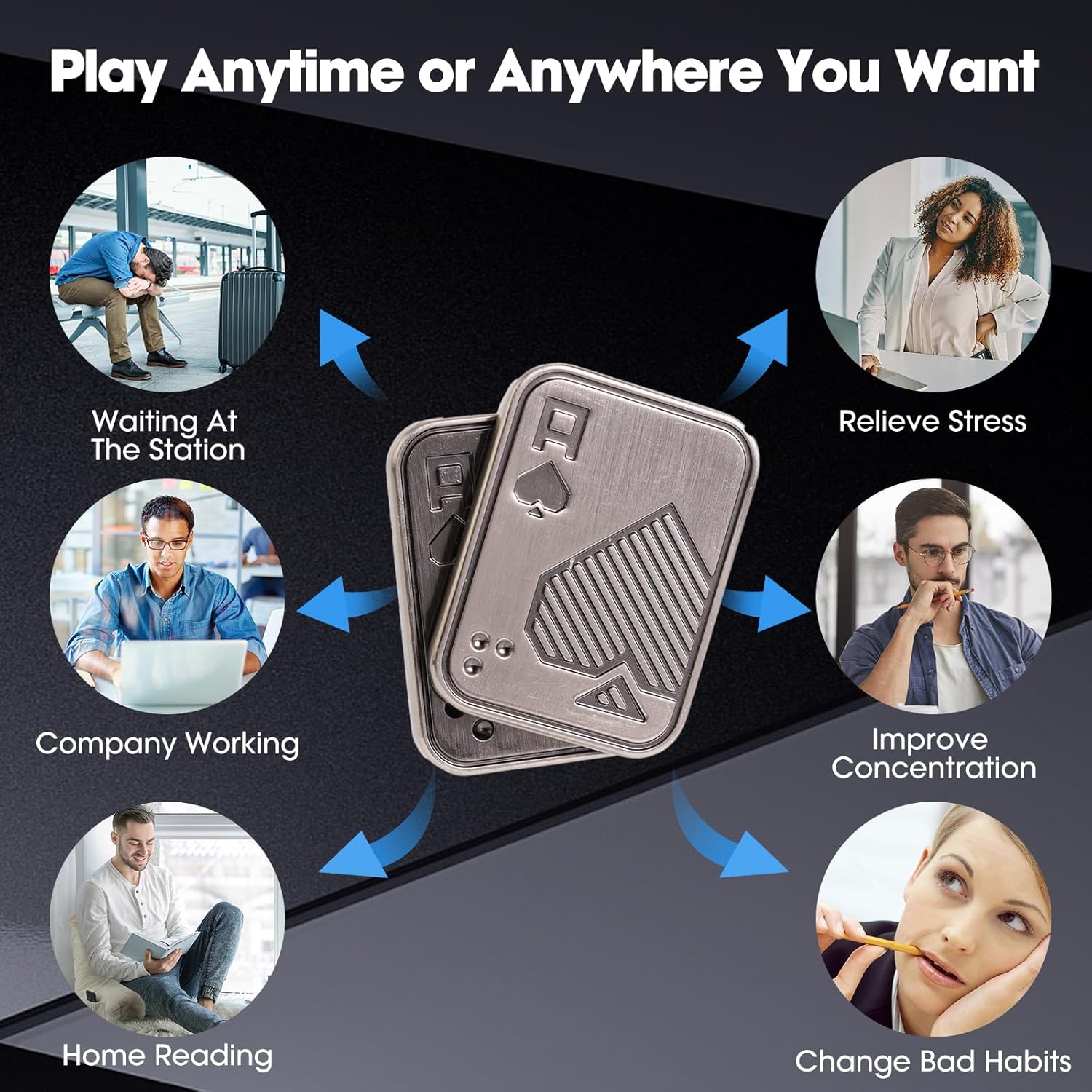 Fidget Slider 3 Pack, Magnetic Metal Freestyle Fidget Toys Haptic Coin Poker Card, EDC Fidget Toy for Adults,Relieve Stress Anxiety ADHD