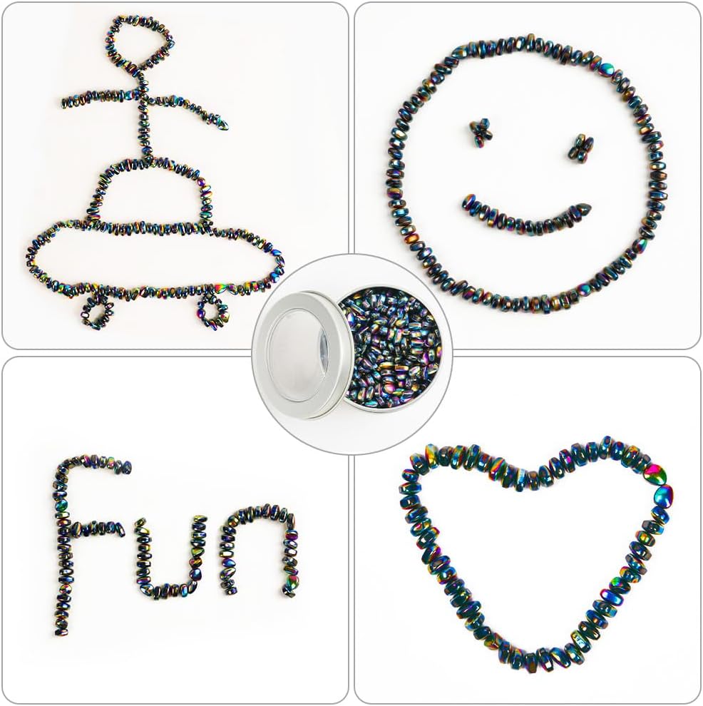 - 【Desk Toy to Relieve Stress and Anxiety】: OSDUE Executive Desk Toy contains over 550 ferrite gemstones in a metal tin, each approximately 0.7cm in size and polished by hand. The stones have a smooth surface, are attracted to each other, and are cool to the touch, like putty. When you need to deal with a boring occasion, just place them on the palm of your hand to relieve irritability and boredom.