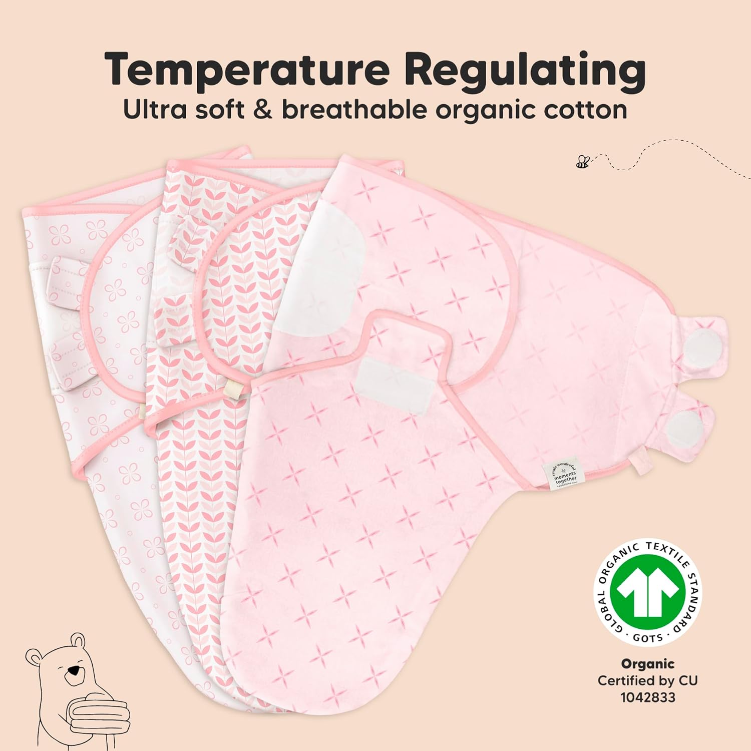 3-Pack Organic Baby Swaddle Sleep Sacks - Swaddles for Newborns, Infant 0-3 Months, Baby Girls, Boys, Soft & Snug Newborn Sleep Sack, Nursery Swaddling Blankets (Blossom, XS)