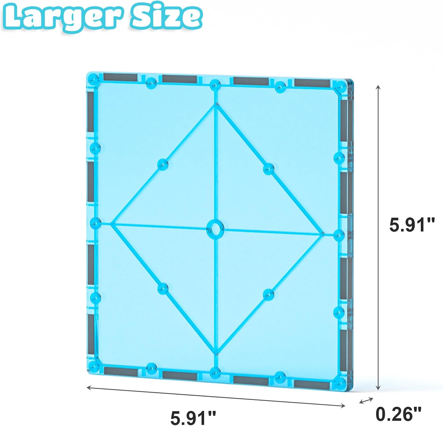 - 【EDUCATIONAL MAGNET TILES】Large square magnetic blocks come with 4 blocks, the large tile sets are designed to make them the perfect complementary accessory to a full set of magnetic building blocks. They can be added to any set to develop children's manipulative skills and enhance their imagination and creativity.