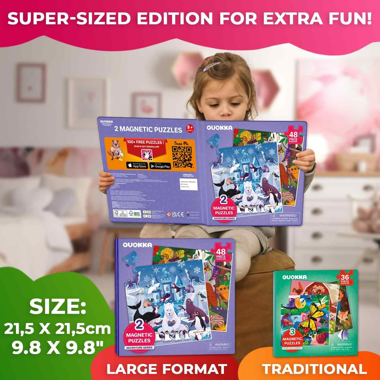 QUOKKA Magnetic Toddler Puzzles Ages 4-6 - 2x48 Travel Puzzles Games for Kids 3-5 Years Old - Activities Car Toy for Boys and Girls 2-4 yo - Polar & Jungle Animals Learning Magnet for Road Trip
