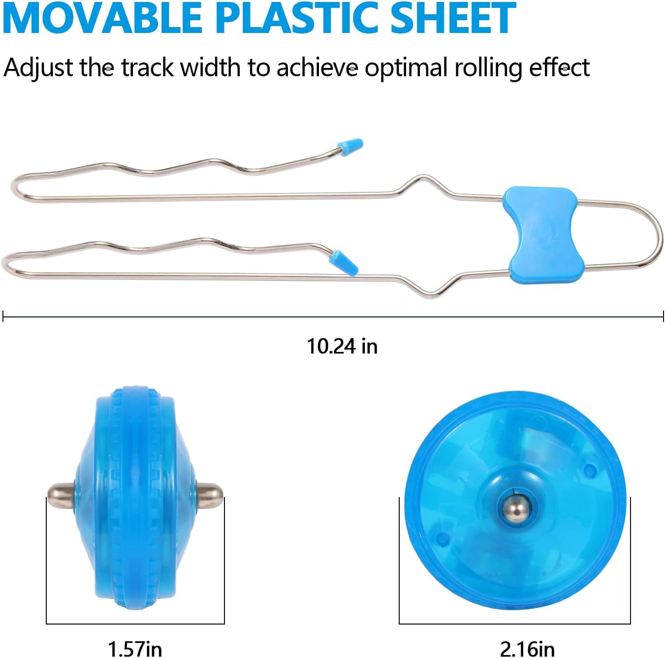 - Premium Retro Toy: Strong Magnetic Grip Keeps Gyro Wheels Attached to Metal Tracks, Lights Up When Thrown for Valuable Hand Exercise, Providing an Entertaining Science Lesson for Your Child. Adjustable Track Width with Movable Bottom Plastic Sheet.