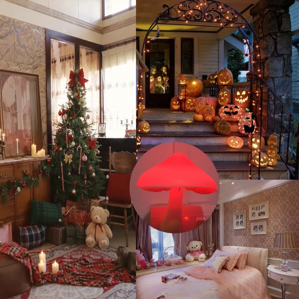 AUSAYE 5 Pack Sensor LED Night Lights Plug in Lamp Mushroom Light for Adults Kids NightLight Bedroom,Bathroom,Toilet,Hallway,Stairs,Kitchen,Basement Red