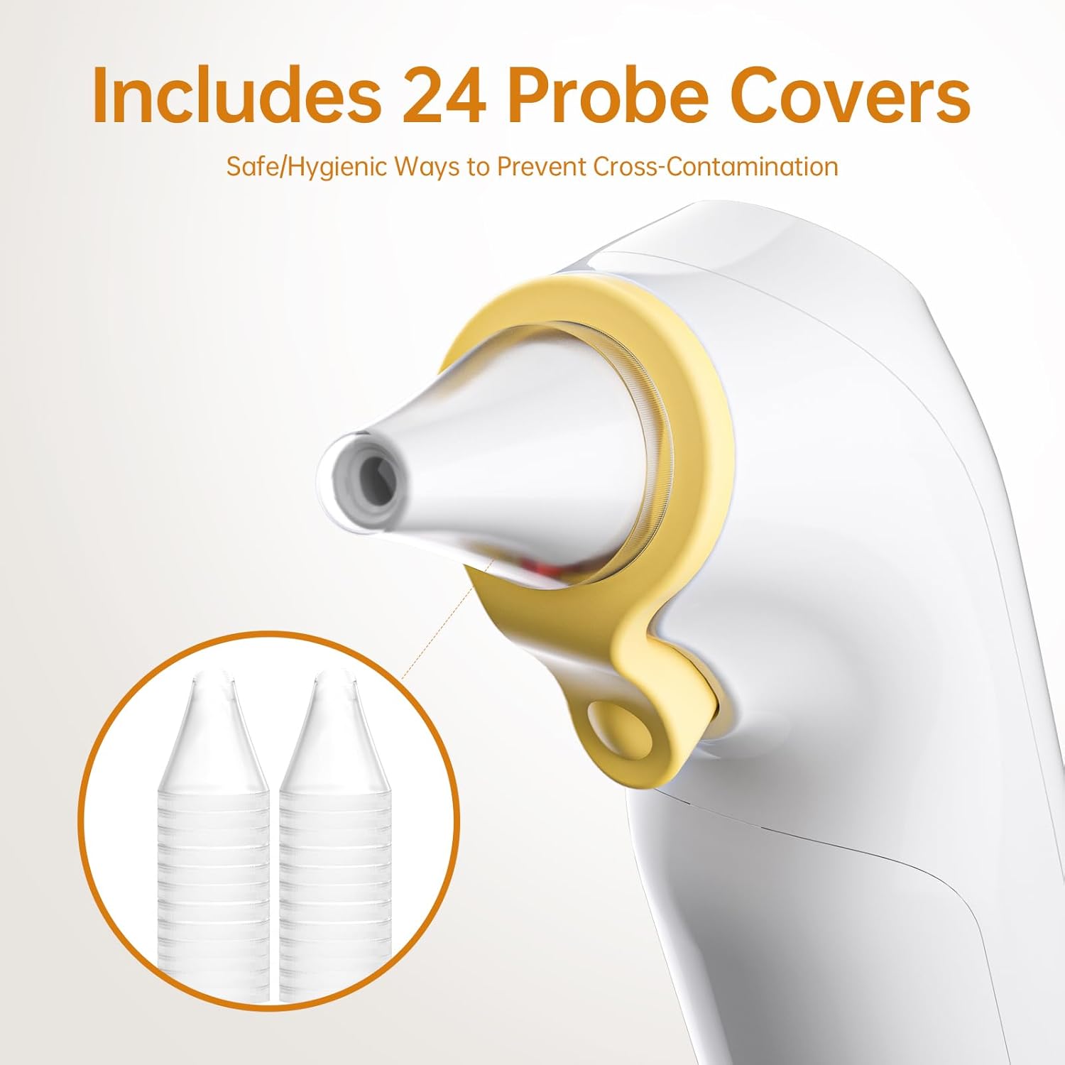 Ear Thermometer, Highly Accurate Ear Thermometer for Kids, Adults and Babies, 30 Memory Recall, 1s Result and 3-Color Fever Alert, with 24 Disposable Probe Covers, Yellow