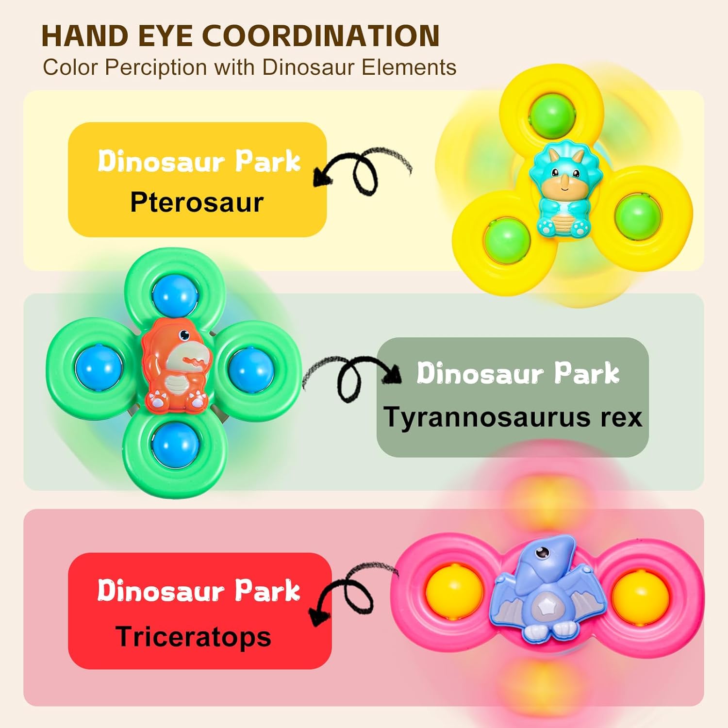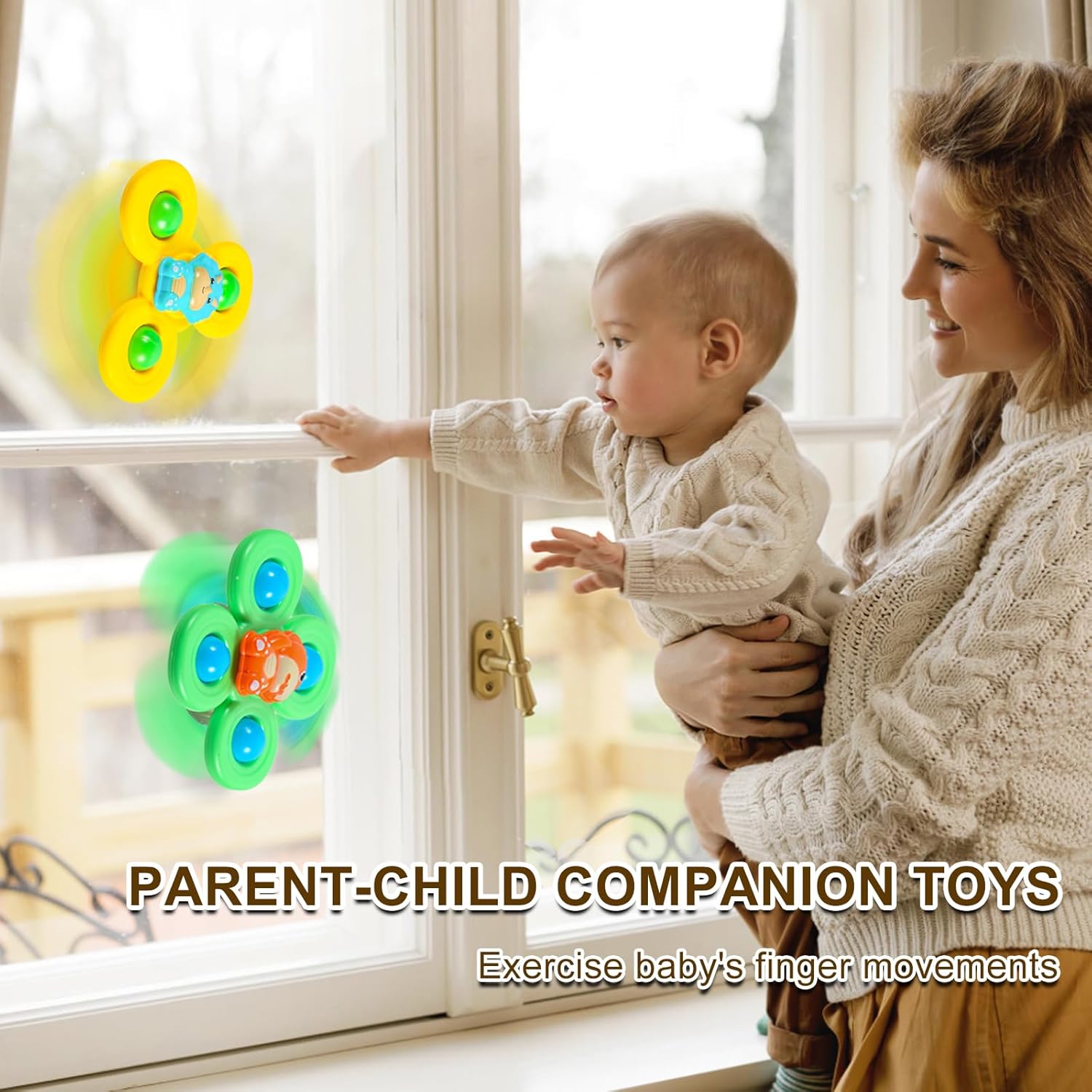 3PCS Spinner Toys for Babies, Baby Bath Toys Travel Essential Airplane Kids Toddlers Toys 1-3 Spinner with Suction Cups, Easter Birthday Baby Gifts Sensory Toys