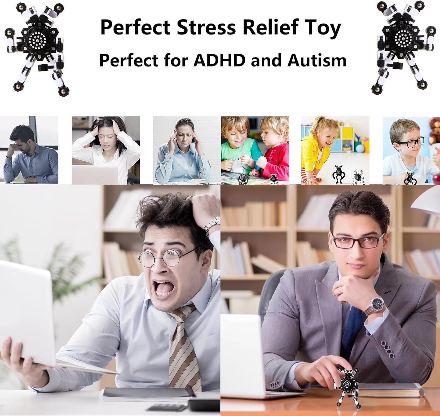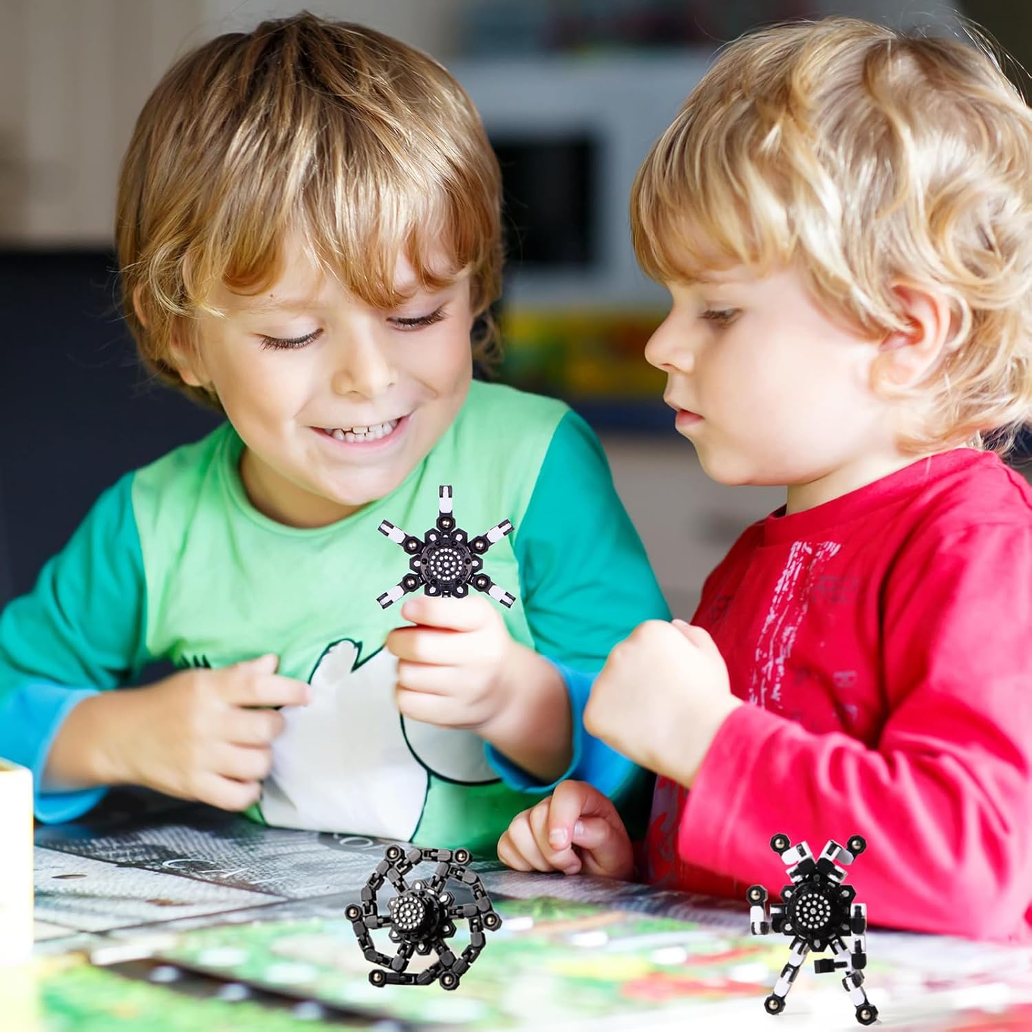 Transformable Fidget Spinners for Kids and Adults Stress Relief Sensory Toys for Boys and Girls Fingertip Gyros for ADHD Autism for Kids (Fidget Toys 4pc- Black)