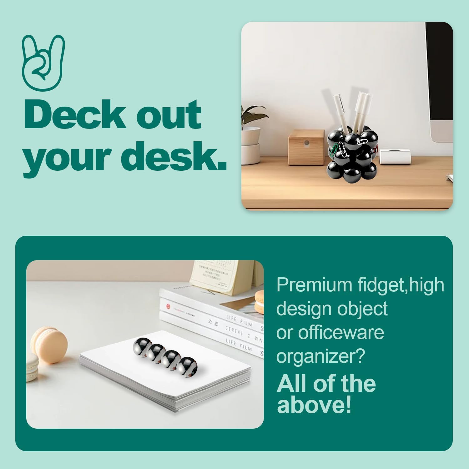 - Decorating and organizing your space: the best fun features. When these satisfying adult knickknacks aren't putting you in a good mood, they'll help you keep your desk organized. Use them as paperclip holders, cool paperweights, or to hold business card tools. When you have enough cool magnetic balls, you can also use them to make a DIY pen holder. AGES 14+: Keep away from all children.