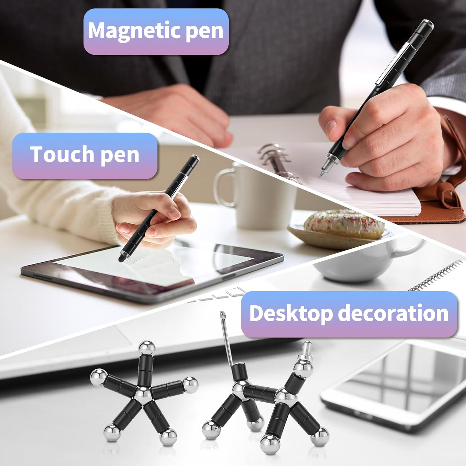 - 【Multifunctional deformation magnetic pen】: This magnetic pen is not only a writing pen, but also a cool toy pen with finger magnet gadget. The magnet pen has created countless interesting, imaginative and creative sculptures, shapes, patterns and puzzles.