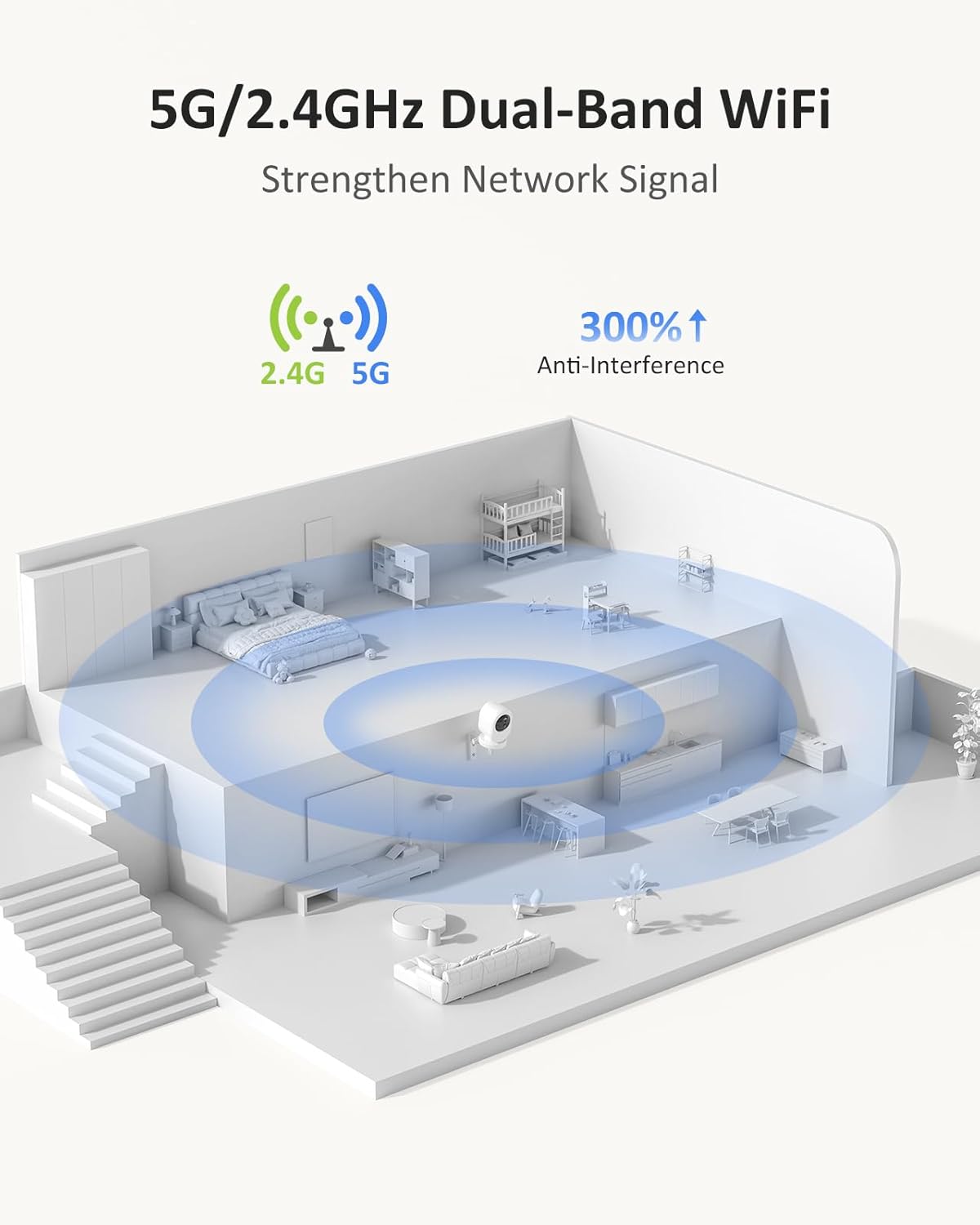 - Stable Dual-Band & Simple Plug-and-Play β A dual-band (2.4 GHz/5 GHz) Wi-Fi connection ensures a stable network signal, eliminating interference. Setting up is effortless: simply connect to your Wi-Fi router. No network cables are required.