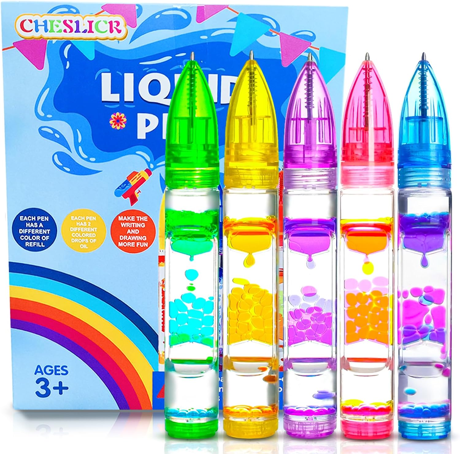 - Idea gift: These liquid sports bubble pens are packaged in a beautiful boutique-style gift box. They are perfect for school supplies, birthday gifts, holiday gifts, class rewards, Christmas gifts, and more! Suitable for all ages - this is something that both children and adults can enjoy.