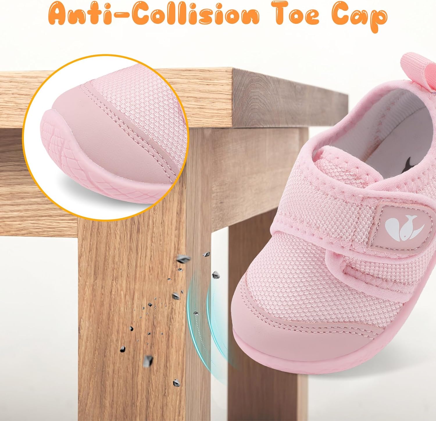 - Walking Confidently: Round toe boxes allow natural splaying of toes for balanced landing and maximum comfort, your baby will walk very confident with them.