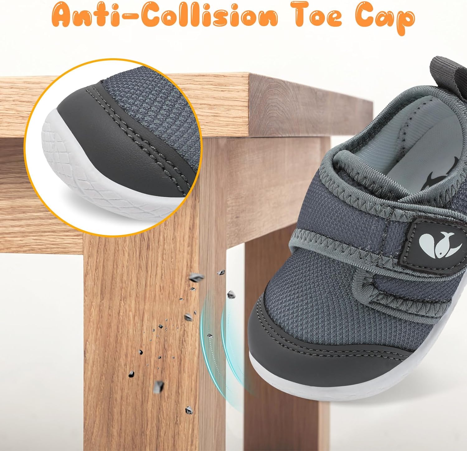 • Walking Confidently: Round toe boxes allow natural splaying of toes for balanced landing and maximum comfort, your baby will walk very confident with them.