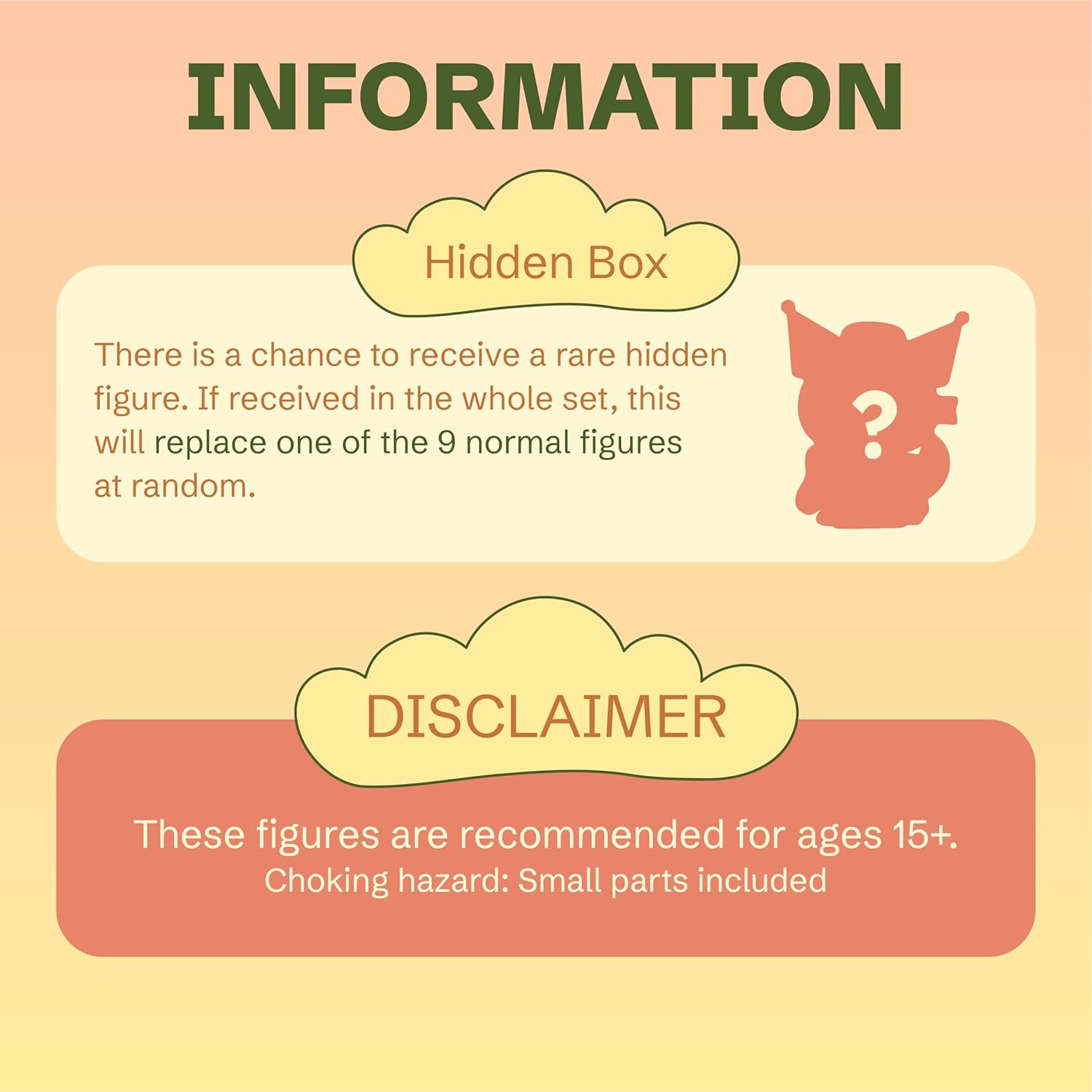 - Blind Box Figures: Collectibles that are delivered in a sealed box, with the figures unknown to both buyers and sellers until opened. This series contains 9 regular figures and 1 hidden edition.