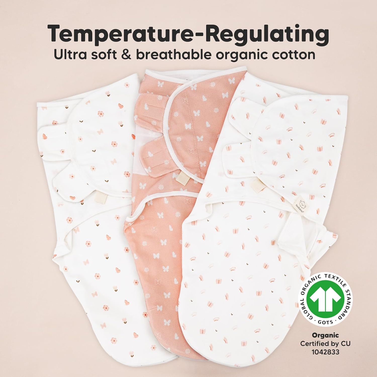 Baby Swaddle Sleep Sacks with Zipper - 3-Pack Swaddles for Newborns 3-6 Months, Infant, Baby Girls, Boys, Soft & Durable Newborn Sleep Sack, Easy Diaper Change Swaddling Blanket (Butterflies, L)