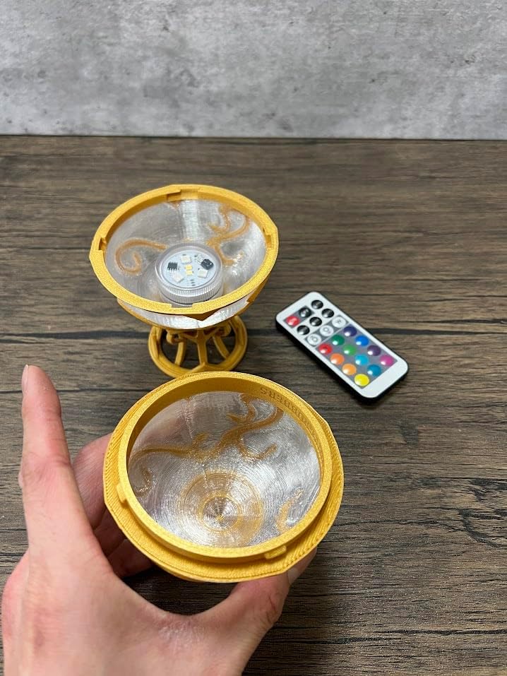 - This pal sphere can hold any small object or the included light up LED. It works better when dark.