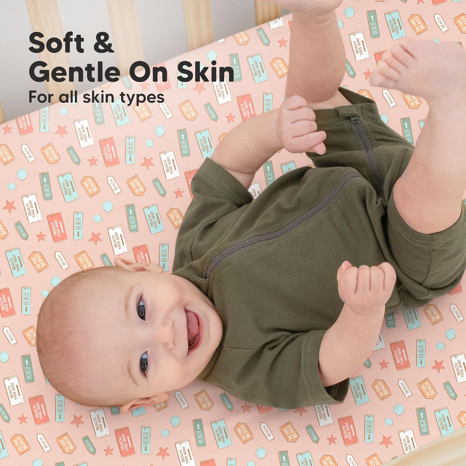 KeaBabies 2-Pack Organic Crib Sheets for Boys, Girls - 52x28 Fitted Crib Mattress Sheet Neutral, Breathable Jersey Cotton Cover for Baby Bed, Toddler Mattress, Soft & Cute Prints (Beach Day)