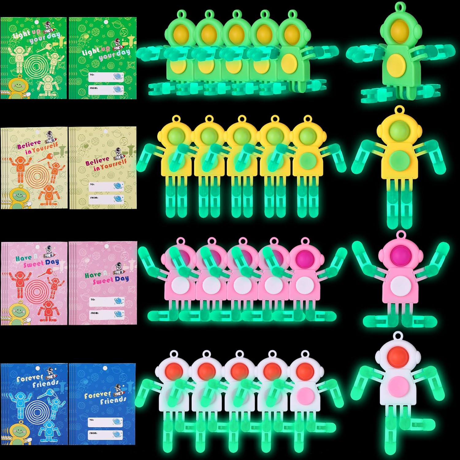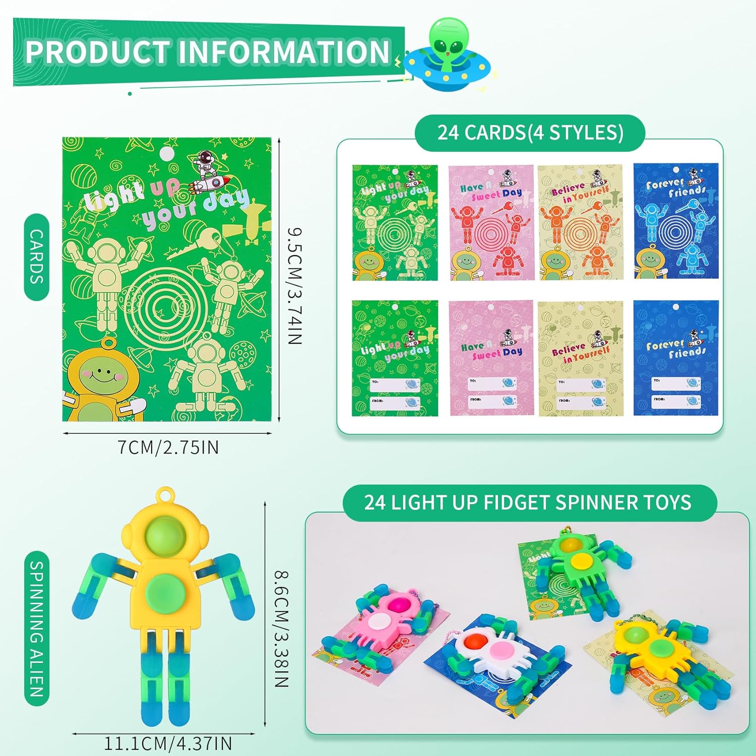 24Pcs Pop Fidget Spinners Bulk - DIY Deformable Astronaut Fingertip Toys with Cards Keychain Fidget Spinners Glow in The Dark Party Favors Sensory Toys Bulk for Kids Adults Classroom Prizes
