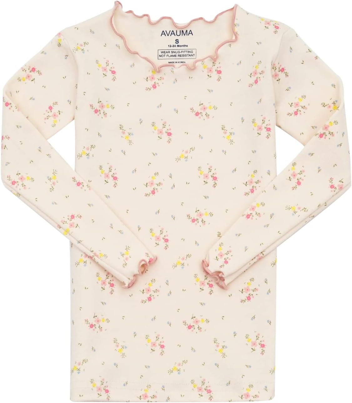 AVAUMA Baby Boy Girl Pajama Set 6M-7T Kids Cute Toddler Snug fit Flower Pattern Design Pjs Cotton Sleepwear Ruffled Shirring