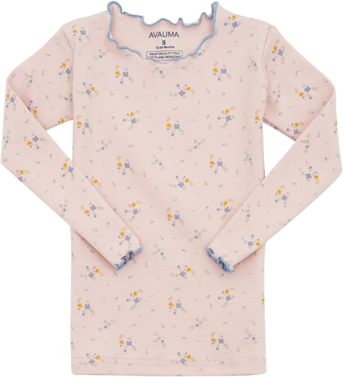AVAUMA Baby Boy Girl Pajama Set 6M-7T Kids Cute Toddler Snug fit Flower Pattern Design Pjs Cotton Sleepwear Ruffled Shirring