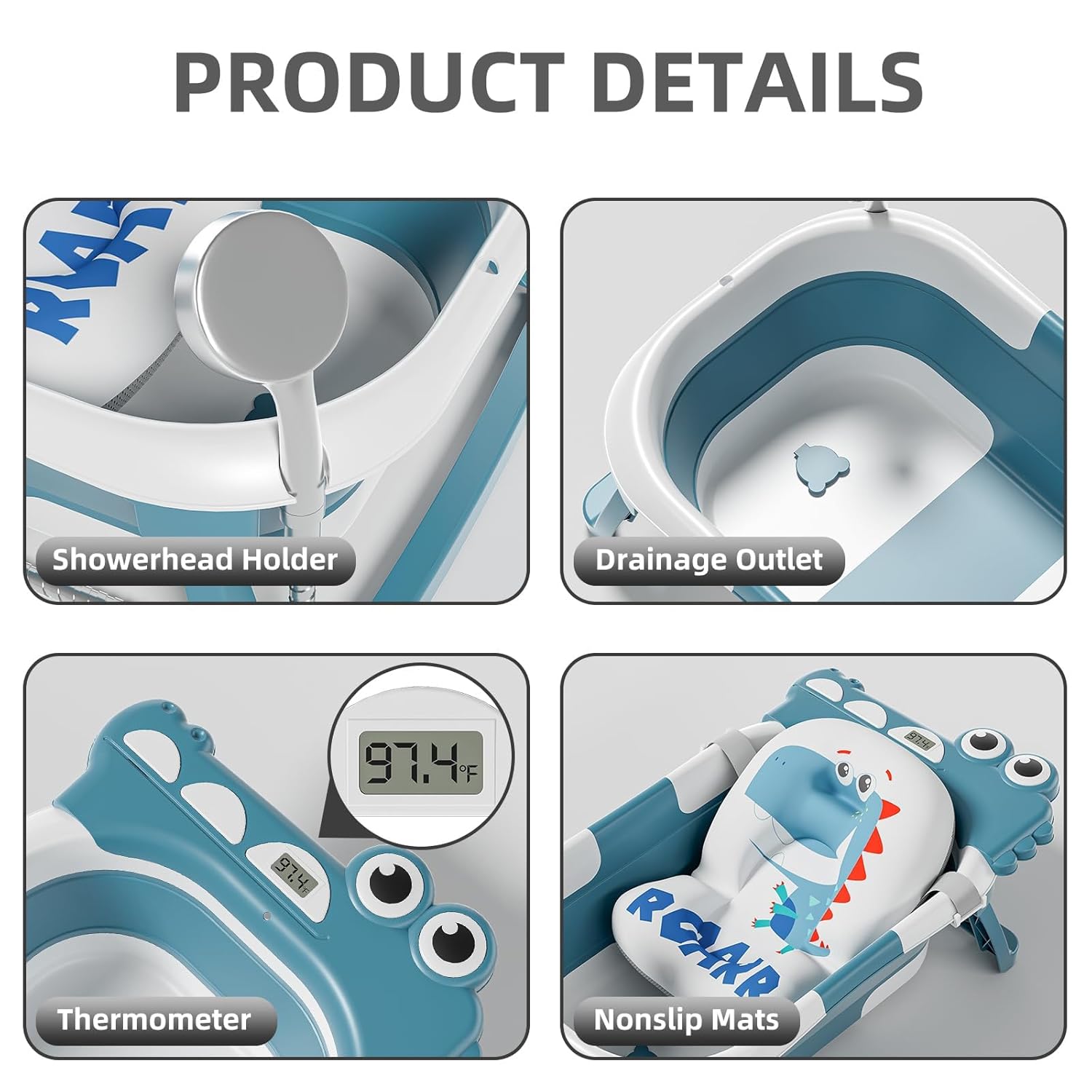 TPN Collapsible Baby Bathtub, Baby Bath Tub with Soft Cushion & Real-Time Thermometer, Baby Bathtub Infant to Toddler Tub (0-36 Months), Portable Newborn Travel Bath tub