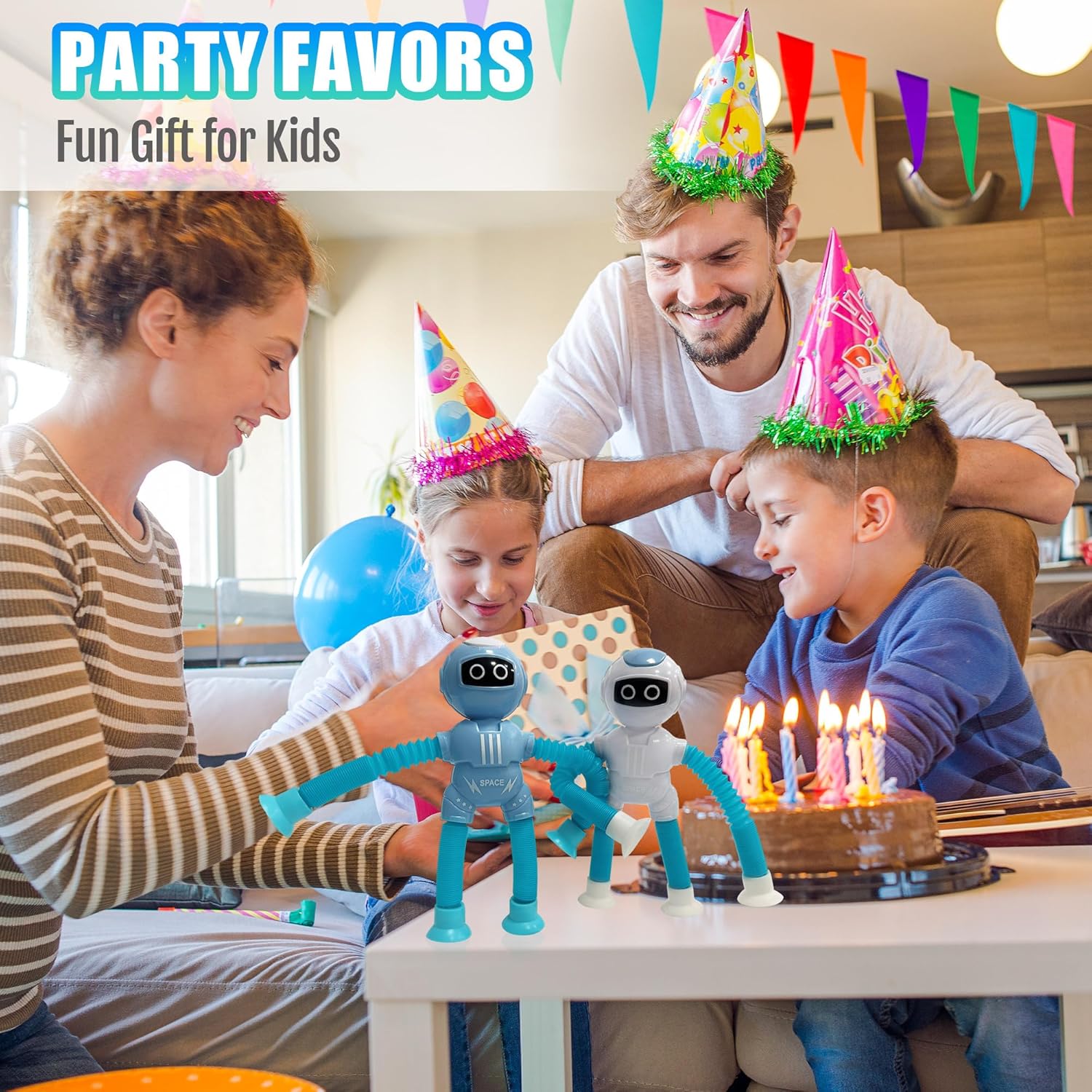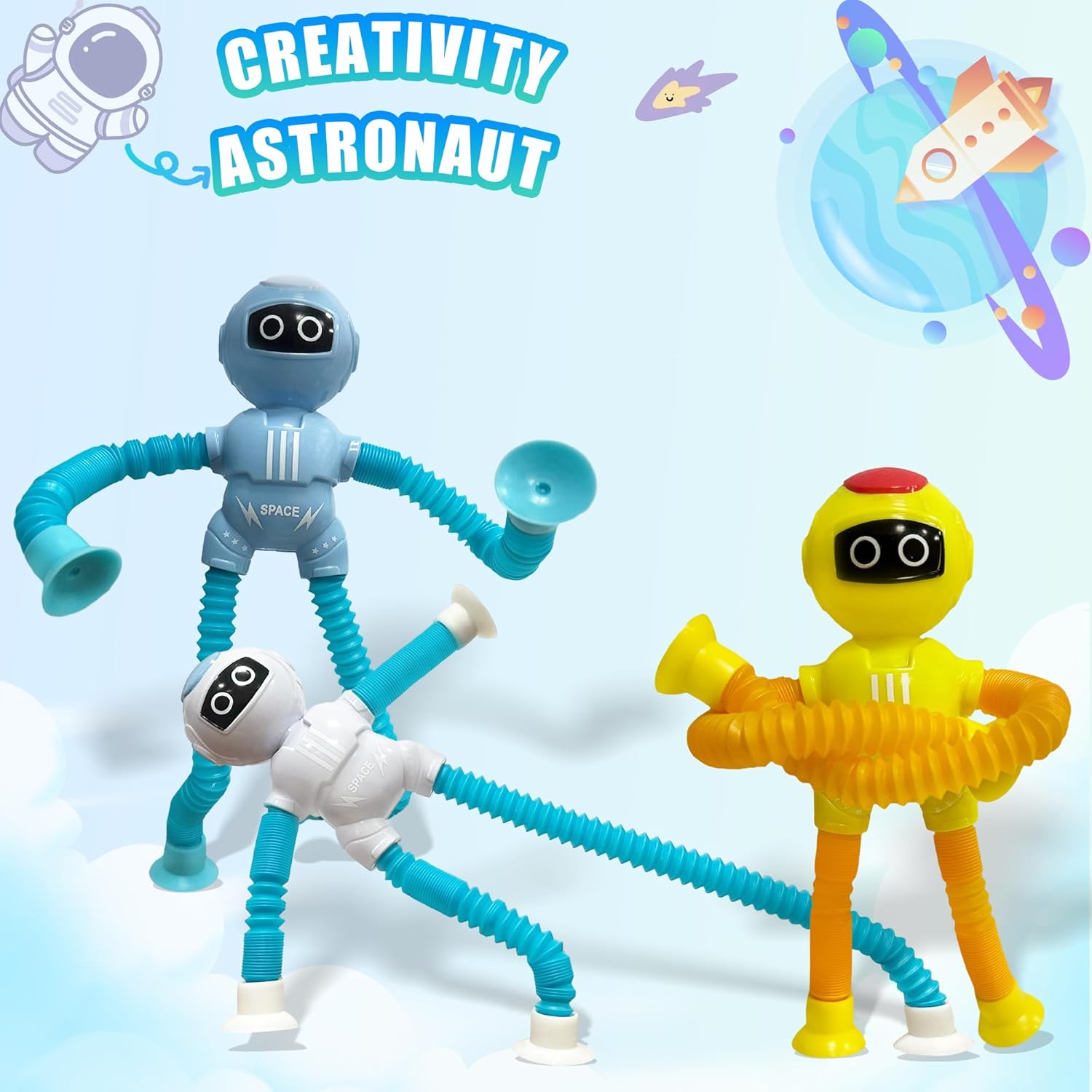 - 【ASTRONAUT POP TUBES】-The Telescopic Suction Cup Toy is not only a fun and entertaining toy, but it also serves multiple purposes. Its arms and legs have strong suction cups that can easily adhere to any smooth surface, such as glass, car windows, bathtubs, refrigerators, or tables;Durable and stretchable arms and legs can create any shape, allowing children to fully unleash their imagination and exercise their hand-eye coordination skills and thinking ability.