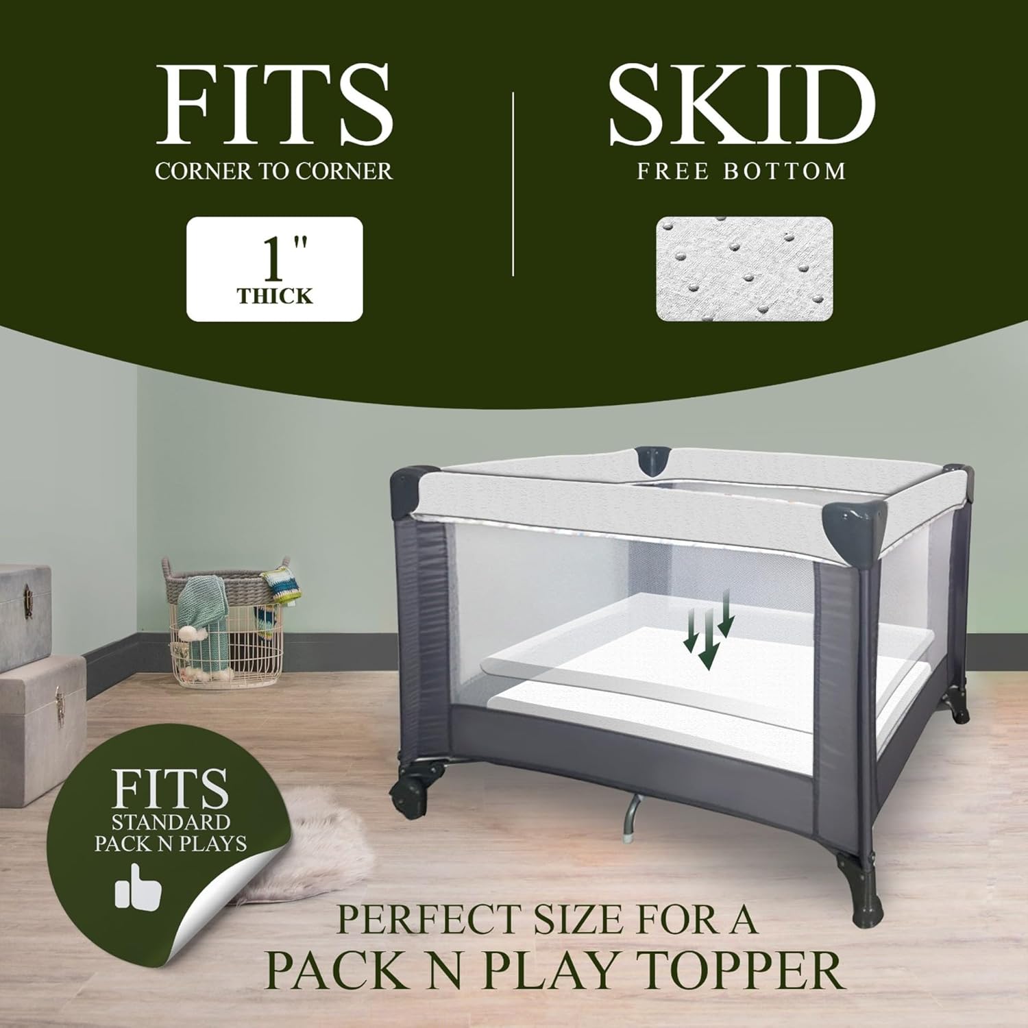 - SENSATIONALLY SOFT 1” FOAM CORE | Toddlers Play & Nap Blissfully with the Perfect Balance of Contoured Support & Breathable Cloud-Like Comfort | 1-Inch Thick Pack n Play Mat Gently Cradles the Body, Helping to Reduce Nighttime Tossing & Turning & Promote Deeper, More Peaceful Sleep | Super Dense Ventilated Foam Offers Ideal Firmness, While Ventilated Design Keeps Kids Cool