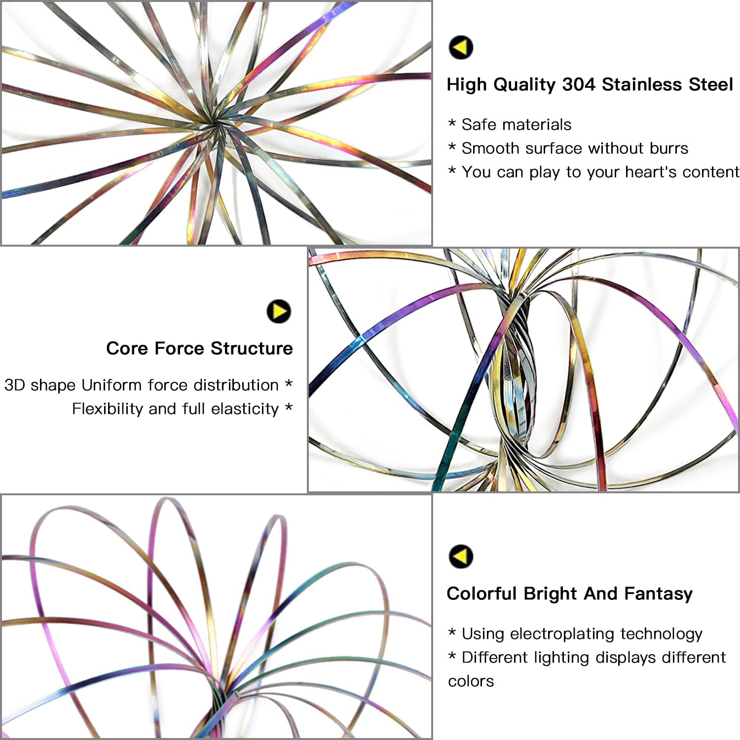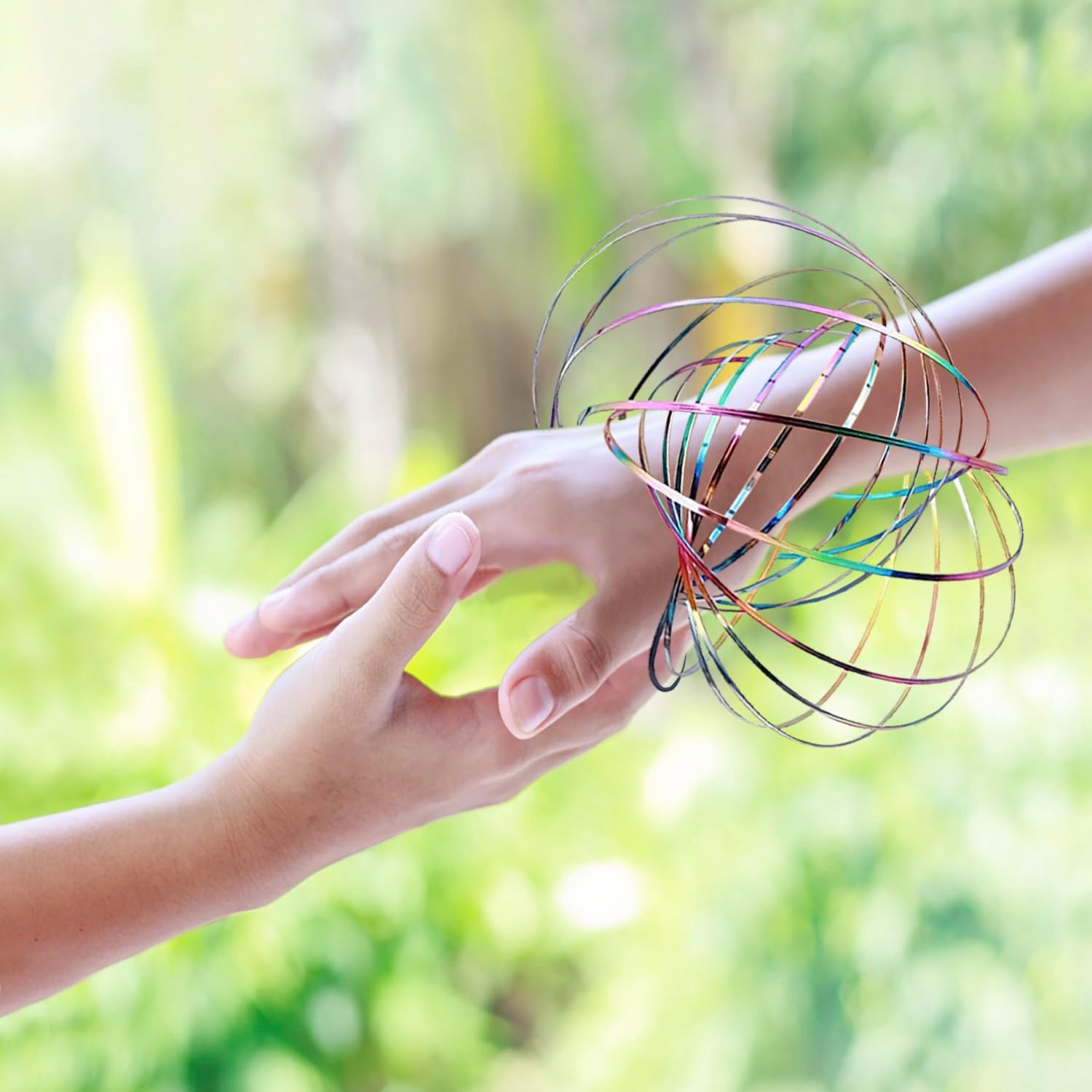 - Jishi Flow Ring Magic Bracelet Fidget Arm Spinner Toy - Stainless Steel Metal Spiral Spinning Rings - Rainbow Iridescent