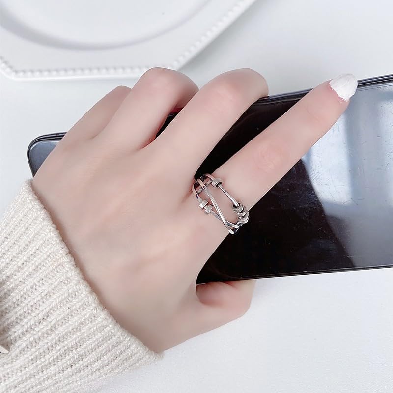 INFUSEU Funny Spinner Fidget Rings for Women Girls Anti Anxiety Stress Worry, Adjustable Size