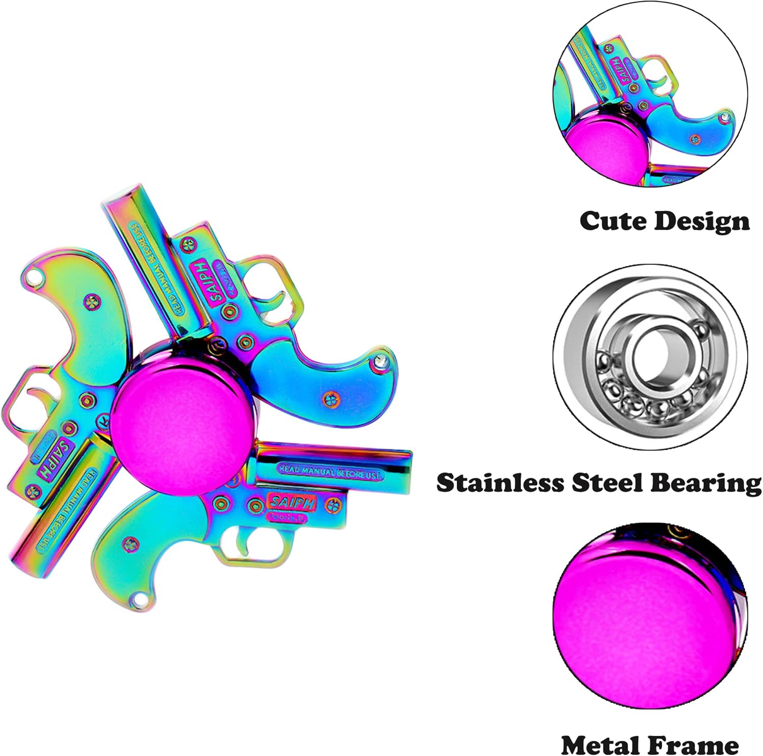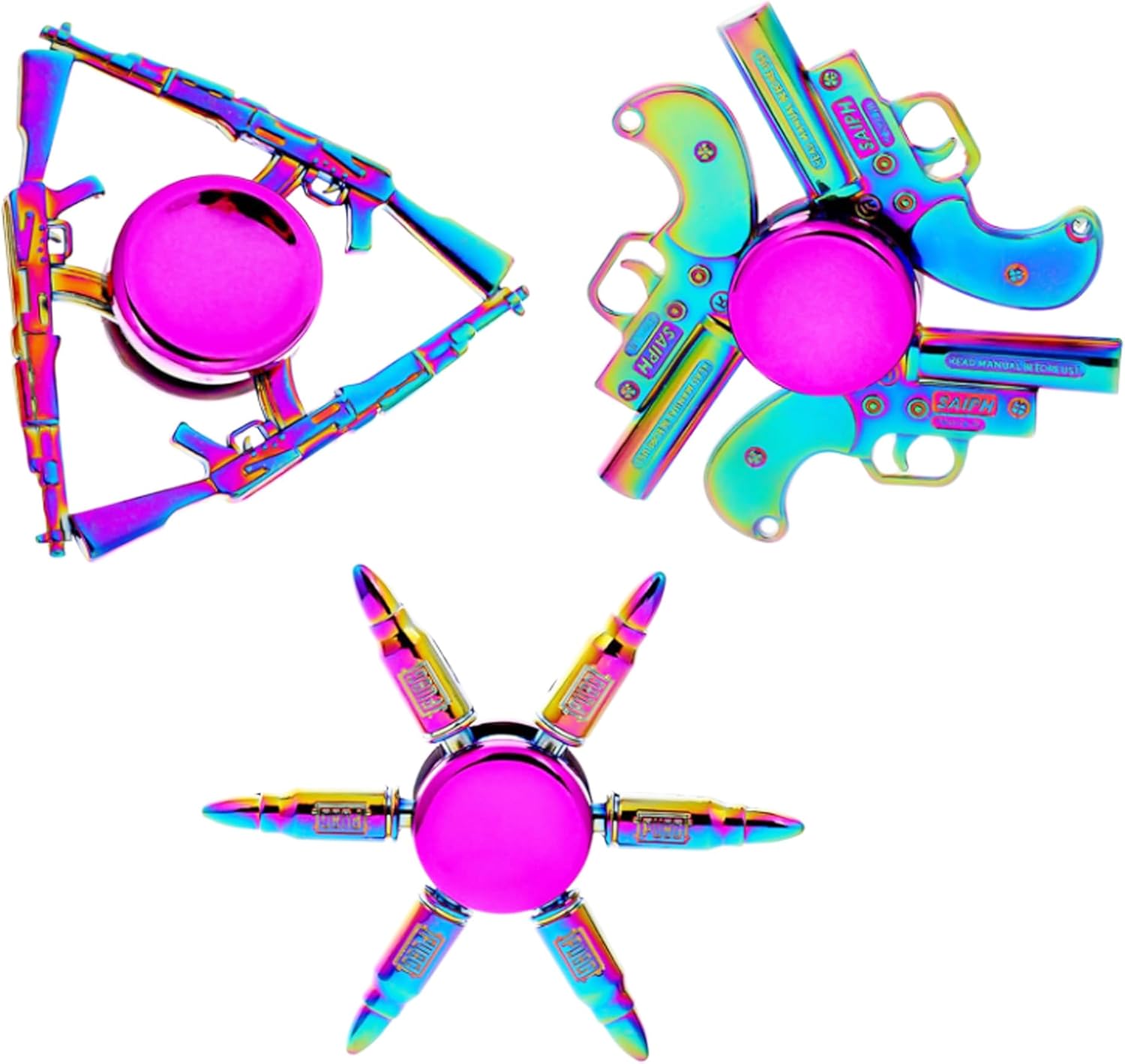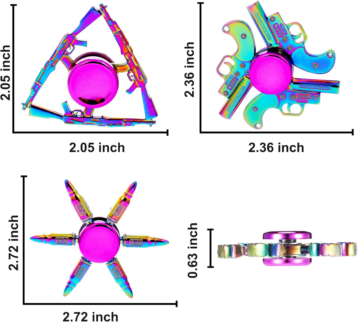 - Metal Fidget Spinners - These fidget spinners are made of high-quality metal material which is much more durable than ABS ones. The smmoth surface, unique design and bright color will give you endless fun without any safety issue