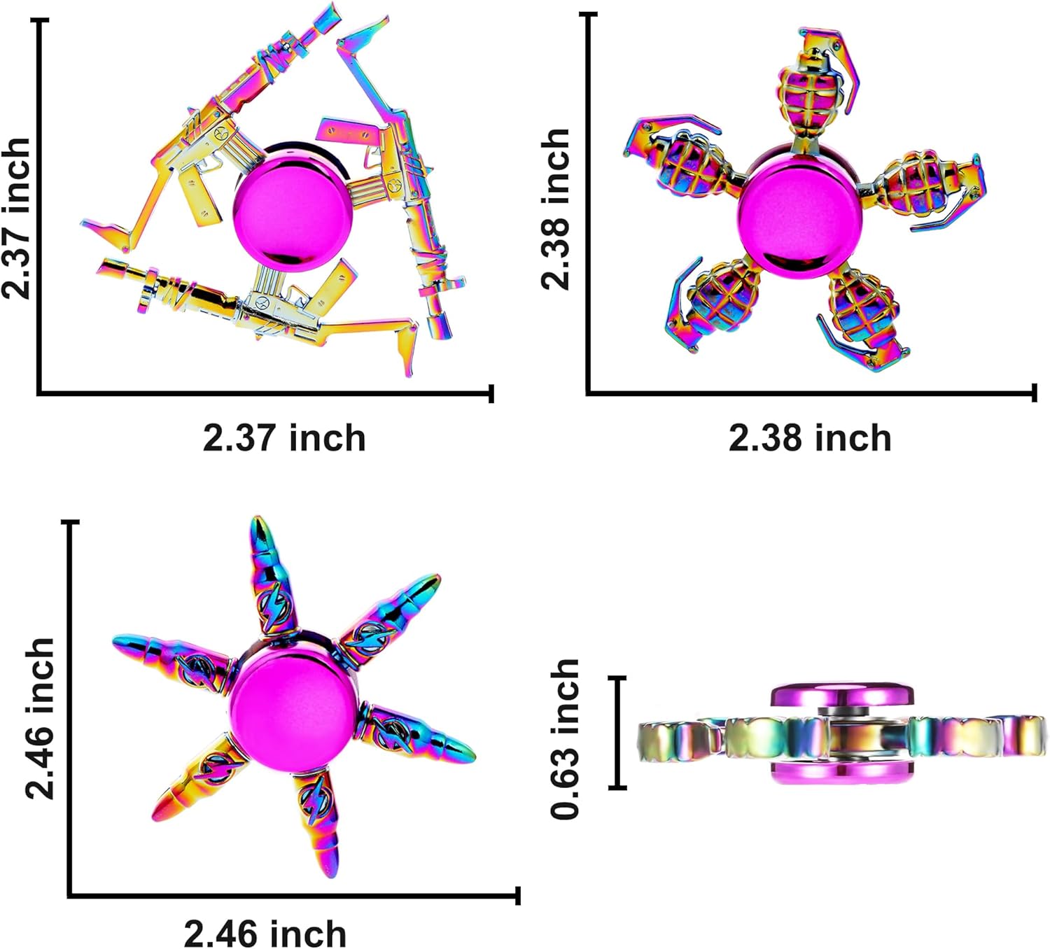 - Anxiety and Stress Relief Toy - The fidget toy set can effectively reduce stress, anxiety and increase focus and attention by spining the metal fidget spinners. Its lightweight and compact design make it easy to carry with you anywhere you go, from the office to the park