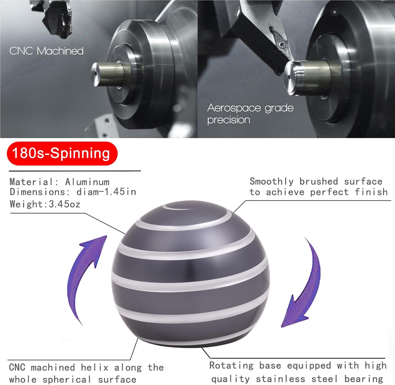 • 【Desk-Kinetic-Toys】1.48 in/0.16 lb, Spinning 180 seconds. Aluminum metal desk toy ball manufactured by CNC processing, small and exquisite.No batteries required & No tools required.
