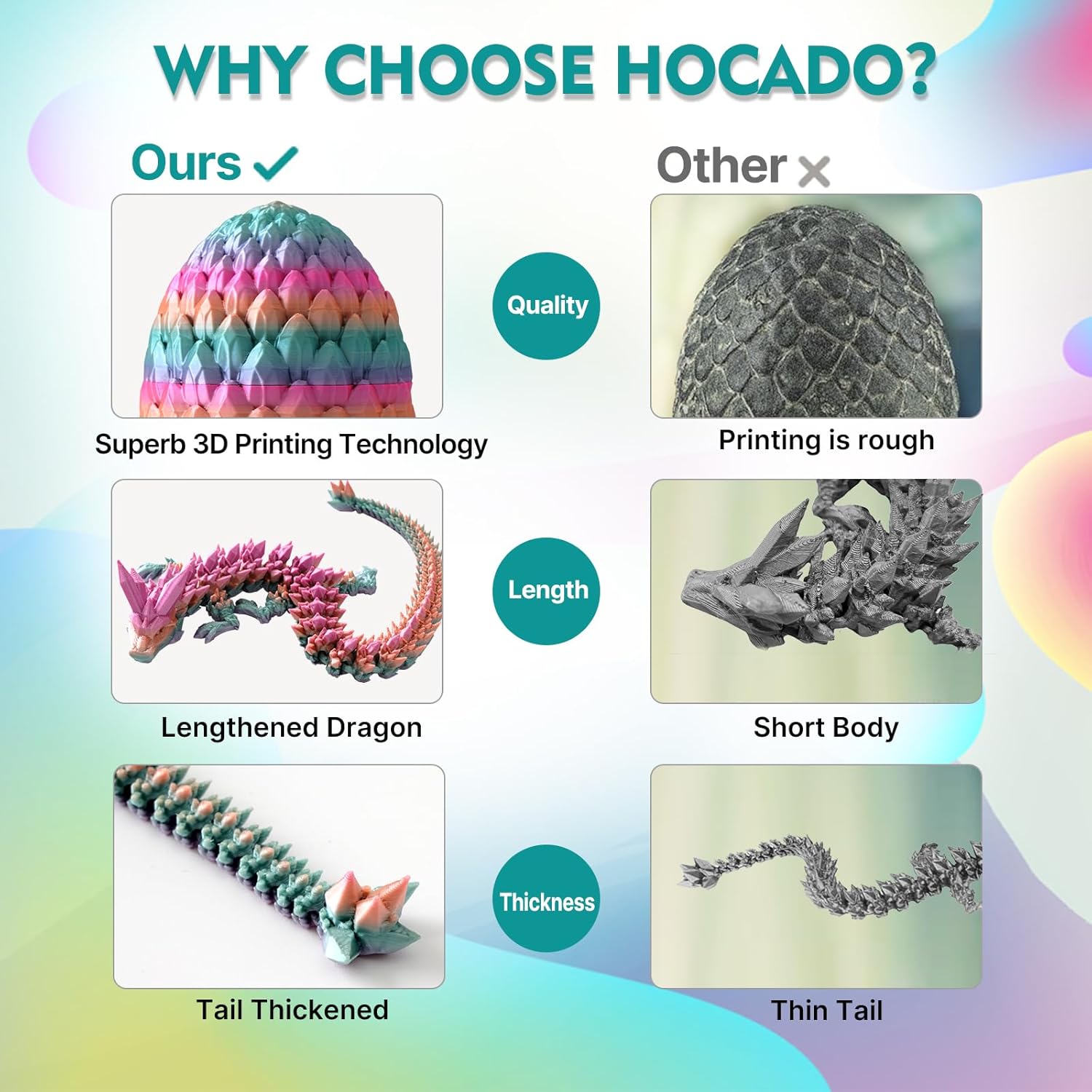 - High-quality Materials:You will get a wing dragon and an egg,the dragon is 9 inches in full length and the egg is 8.6 inches.Fidget dragon is crafted from harmless,high quality PLA material using 3D printing technology