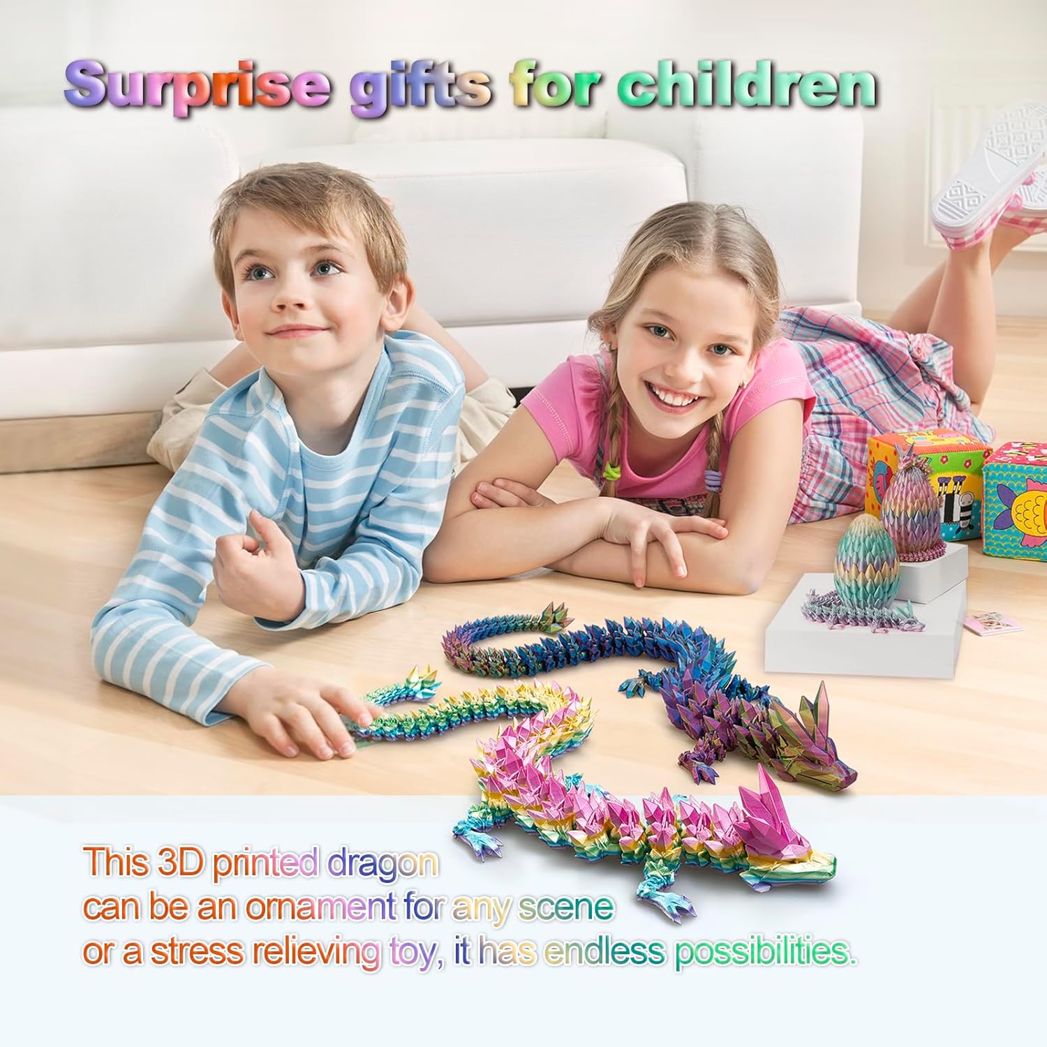 Large 30" 3D Printed Dragon,Articulated Crystal Dragon,3D Dragon Toy,Dragon Collection, Executive Desk Decor (Rainbow)