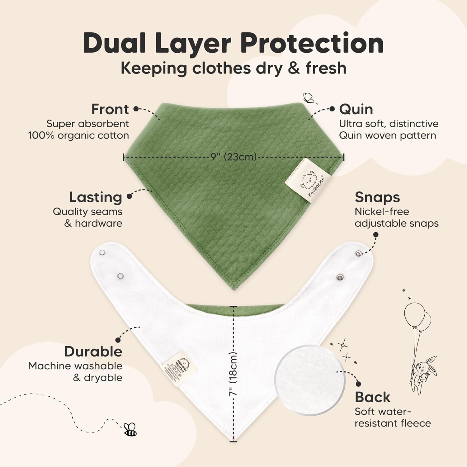 - 8-Pack Quin Bandana Bibs for Boys, Girls - Our organic baby bibs are exclusively designed by KeaBabies to ensure that your baby never runs out of styling options. Our drool bibs are easy to match, making them a fuss-free teething baby essential.
