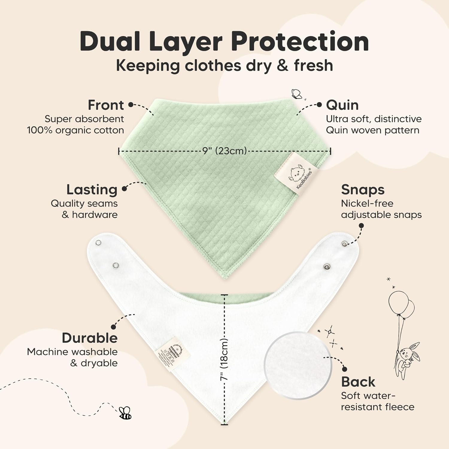 - 8-Pack Quin Bandana Bibs for Boys, Girls - Our organic baby bibs are exclusively designed by KeaBabies to ensure that your baby never runs out of styling options. Our drool bibs are easy to match, making them a fuss-free teething baby essential.