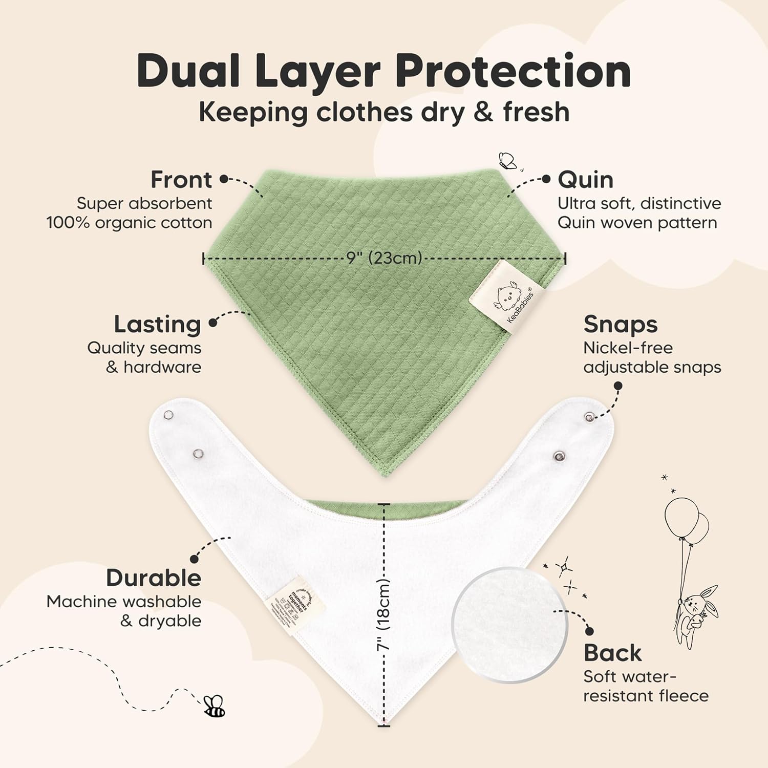 - 8-Pack Quin Bandana Bibs for Boys, Girls - Our organic baby bibs are exclusively designed by KeaBabies to ensure that your baby never runs out of styling options. Our drool bibs are easy to match, making them a fuss-free teething baby essential.