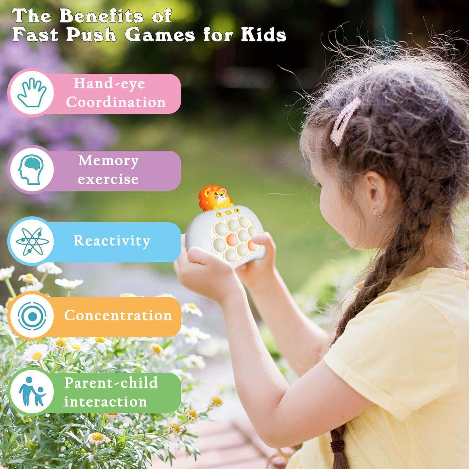 Fast Push Pop Game It Fidget Toys Pro for Kids Adults, Handheld Game Machine, Squeeze Poppet Sensory Electric Quick Push Bubble Toy, Birthday Gifts for Boys Girls Teens (Lion)