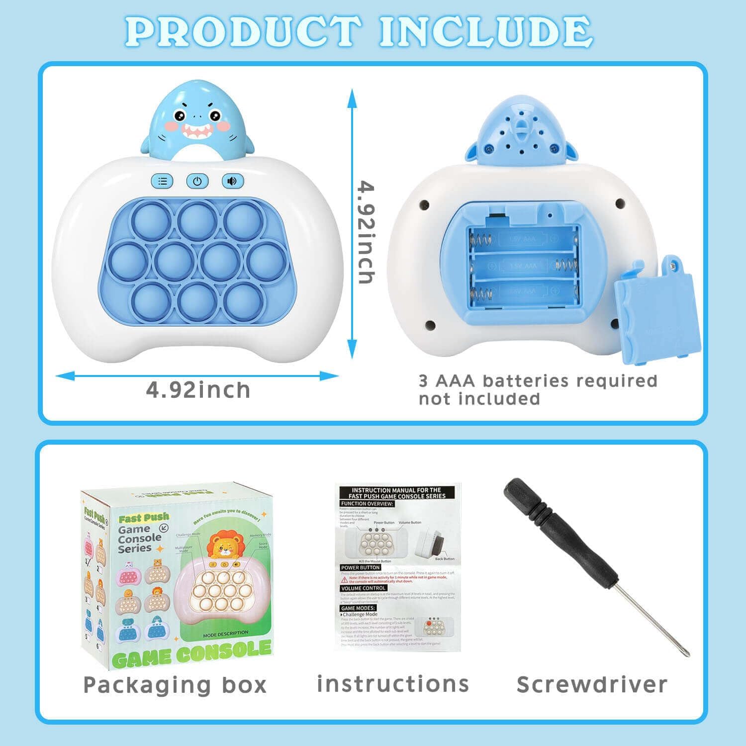 Fast Push Pop Game It Fidget Toys Pro for Kids Adults, Handheld Game Machine, Squeeze Poppet Sensory Electric Quick Push Bubble Toy, Birthday Gifts for Boys Girls Teens (Shark)