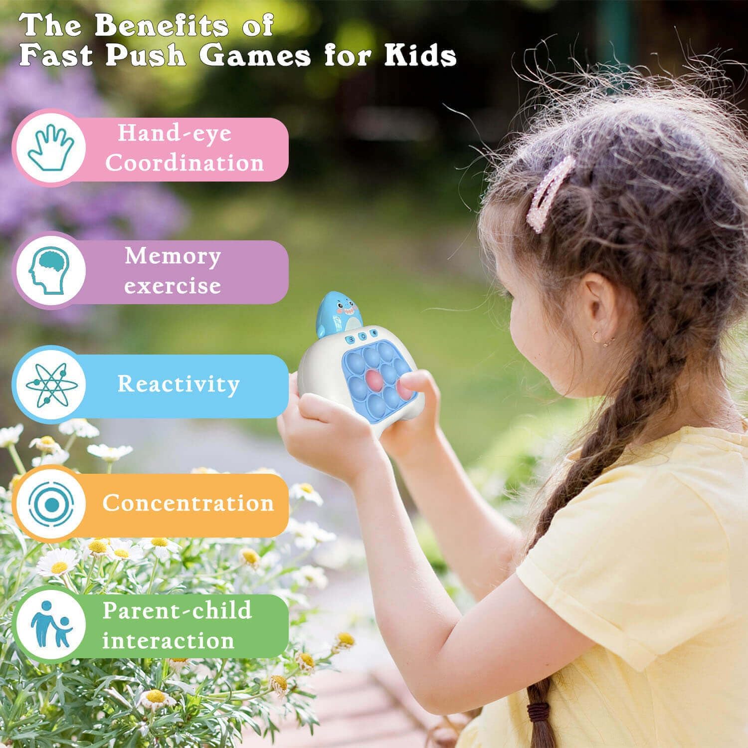 - 【Easy to Carry】: The Fast push game console has a suitable size and durable design, making it perfect for travel or outdoor/indoor activities. It can be played with friends or parents at parties. Adjust the volume or mute it as needed. (3 AAA batteries required, not included)