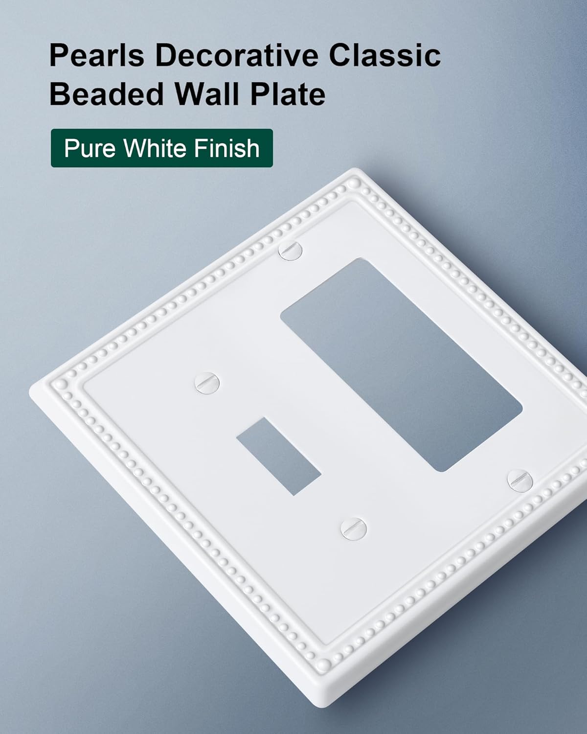 - Timelessly Elegant - The switch plates and outlet covers features an exquisite crisp white finish with a stylish beaded border. Offering an inviting, comfortable feel to your home decor. Effortlessly blends practicality with a refined decorative accent and sophisticated charm.